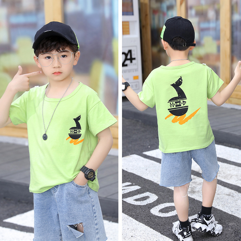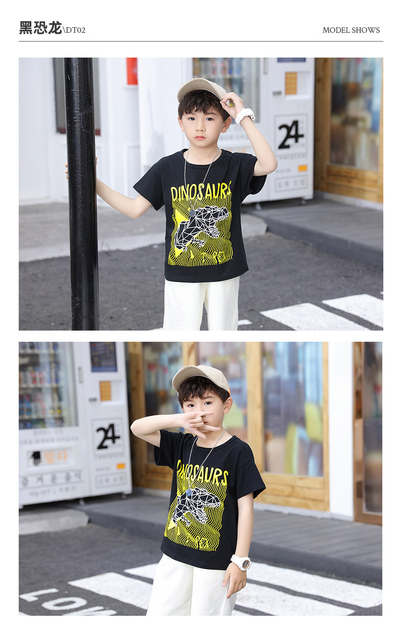 【】여름 큰 소년과 소녀 반팔 티셔츠 순면 느슨한 소년과 소녀상의스토어 가기