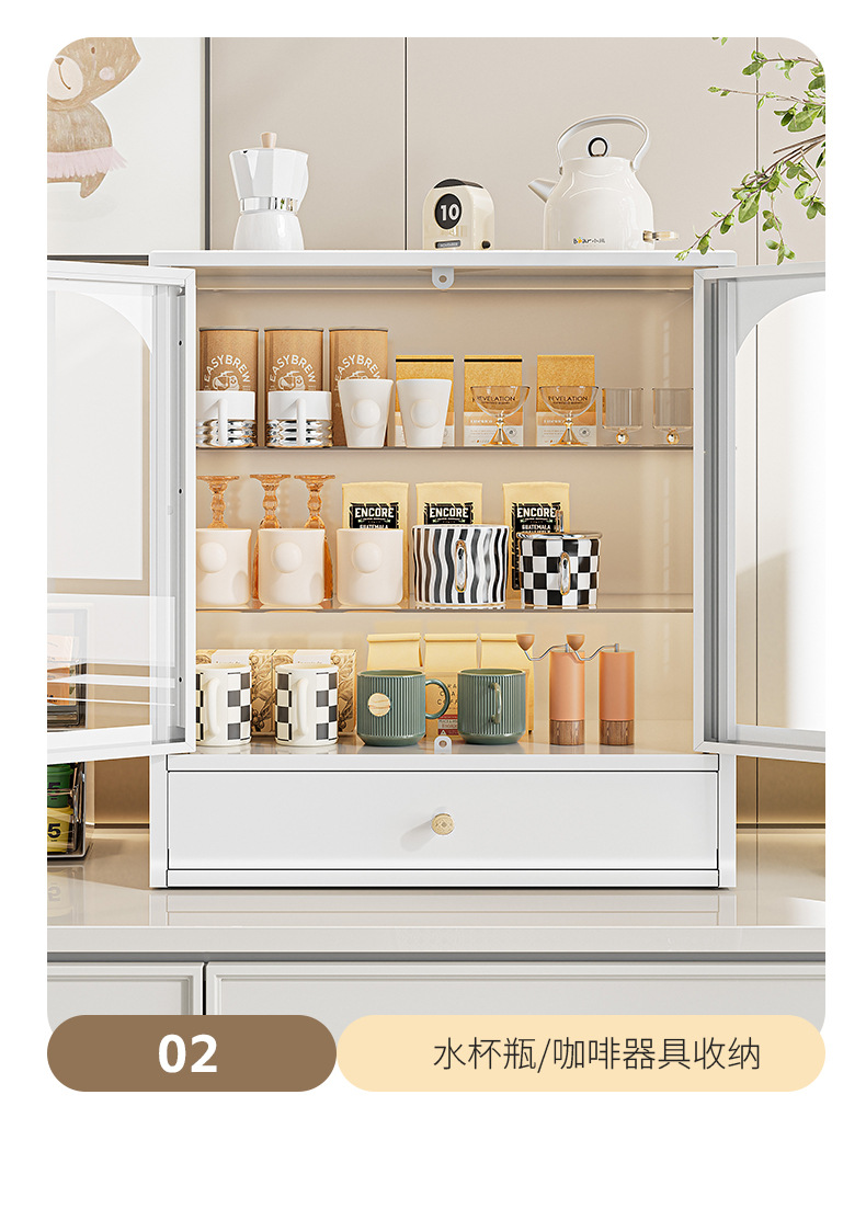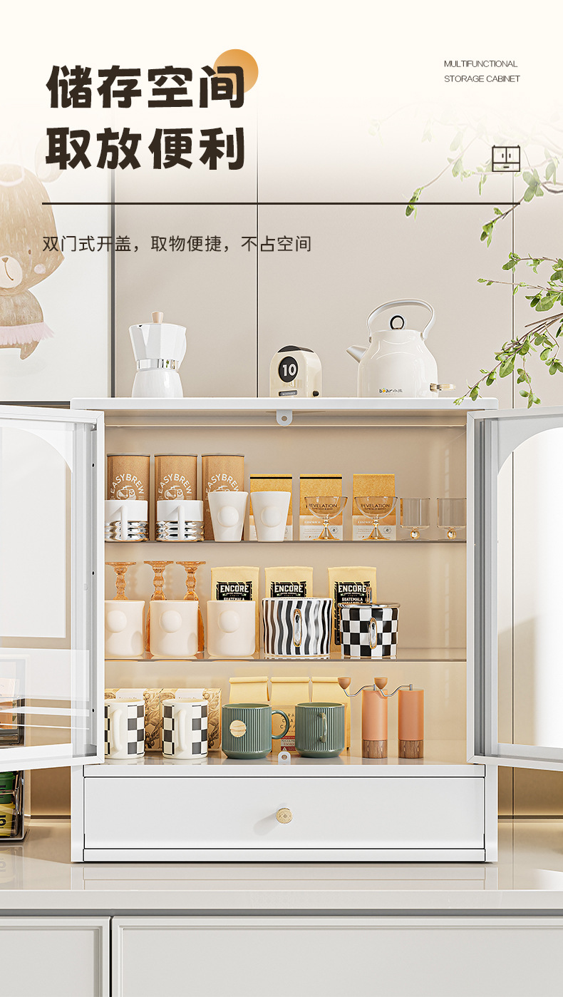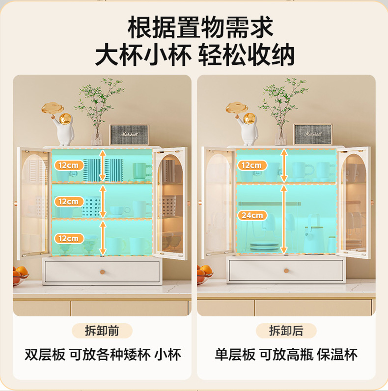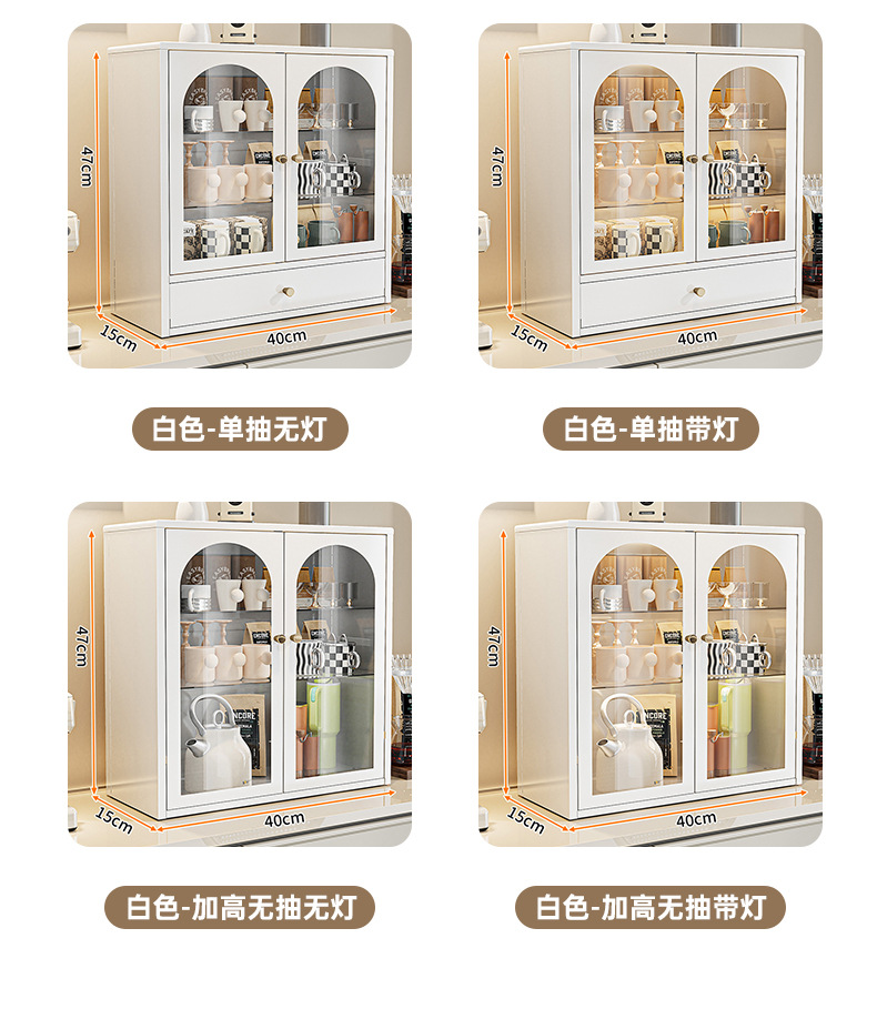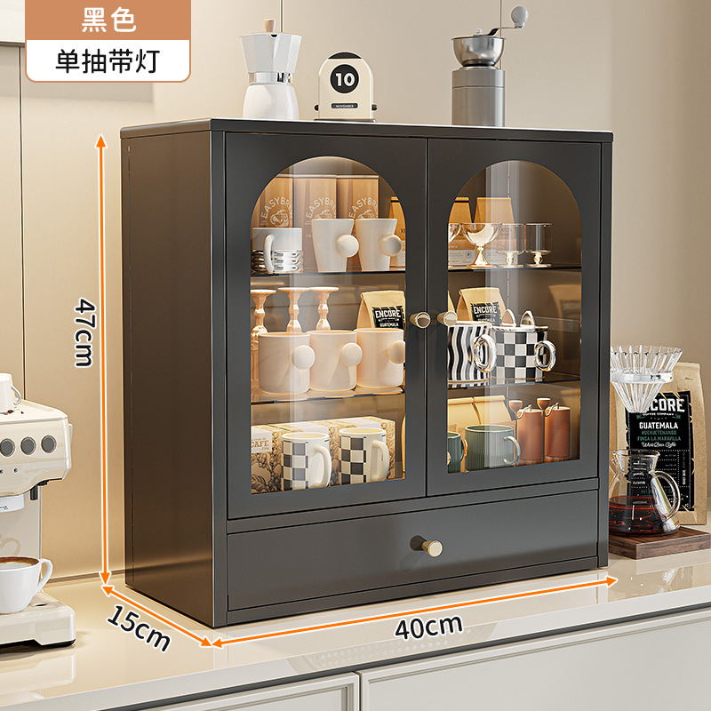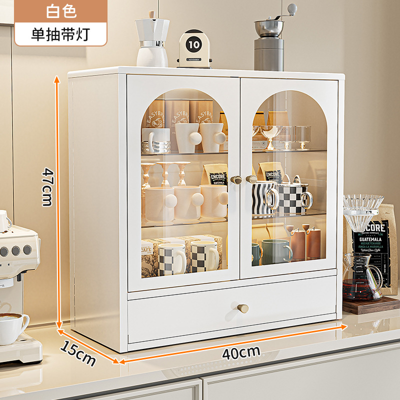 주방 카운터 선반 차 세트 물컵 보관함 컵이있는 높은 서랍 컵 습기 방지 밀봉 컵 보관 캐비닛