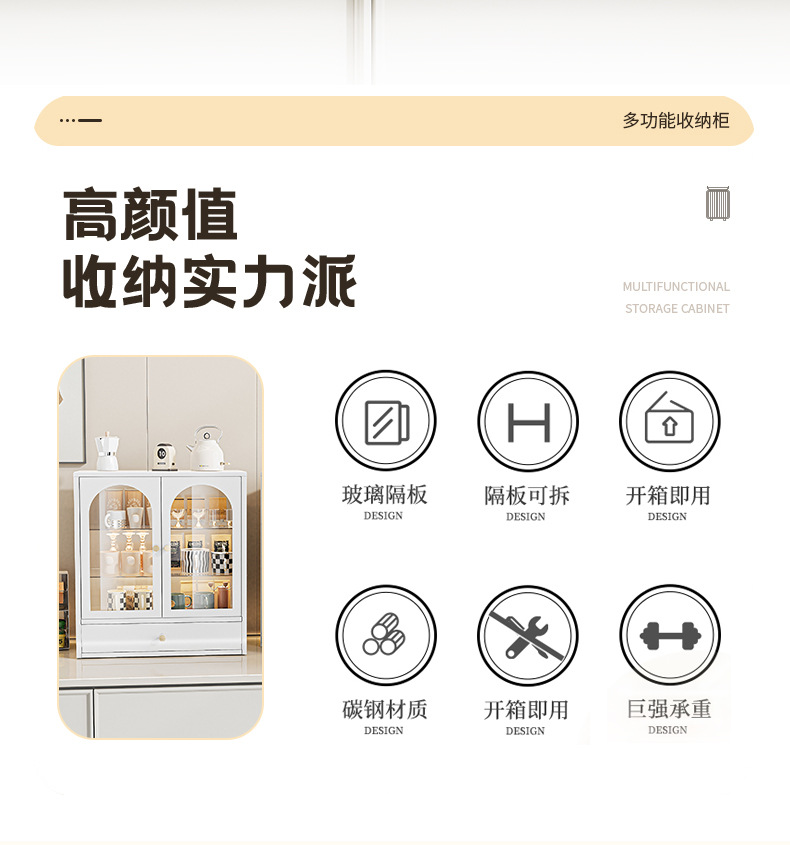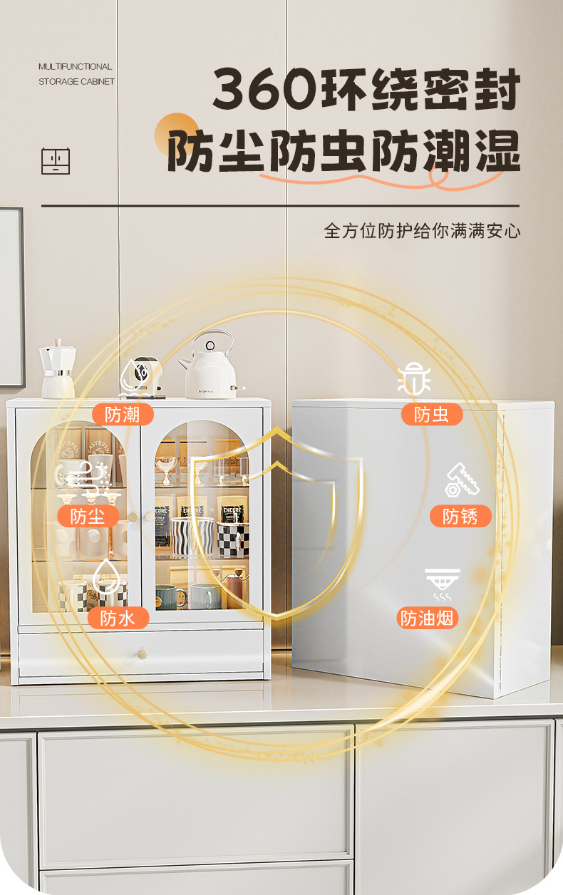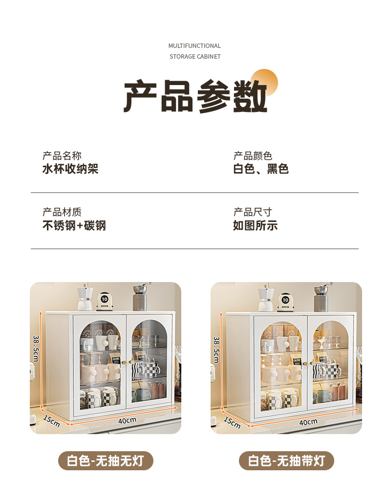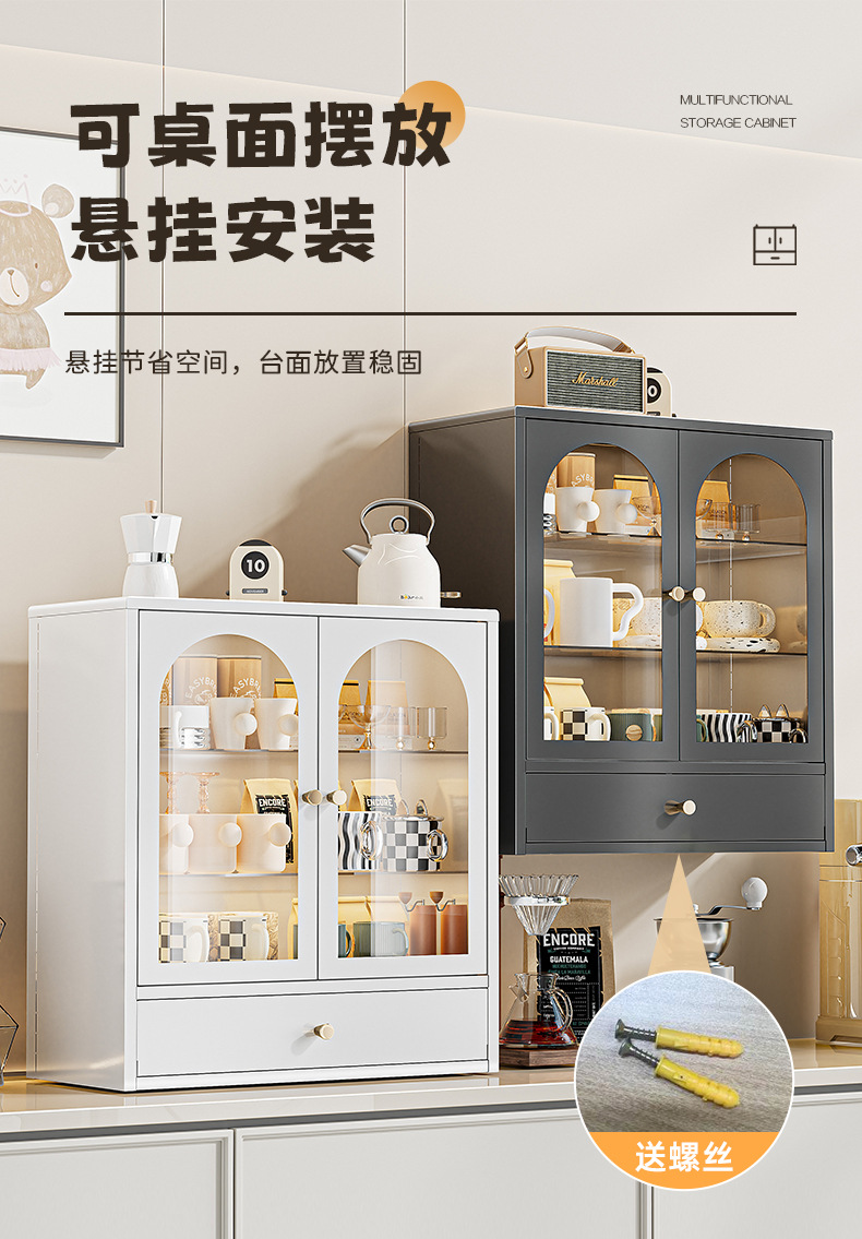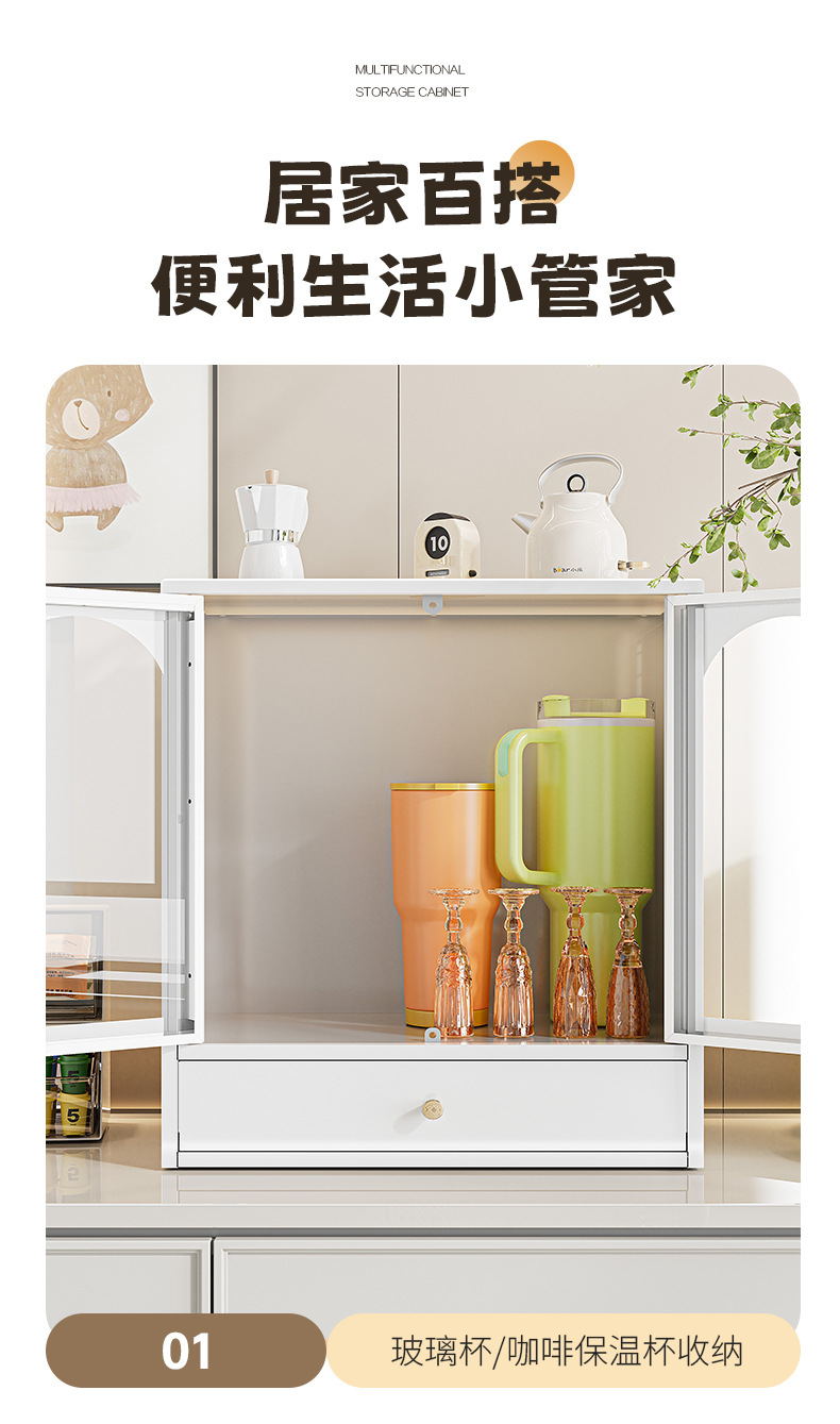주방 카운터 선반 차 세트 물컵 보관함 컵이있는 높은 서랍 컵 습기 방지 밀봉 컵 보관 캐비닛