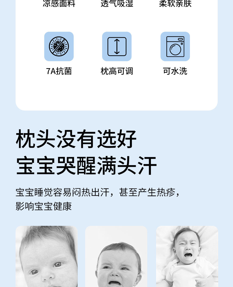 아기 베개 여름 땀 흡수 및 통기성 아기 얼음 실크 냉각 베개 0 ~ 6 개월 이상 신생아 어린이 구름 베개