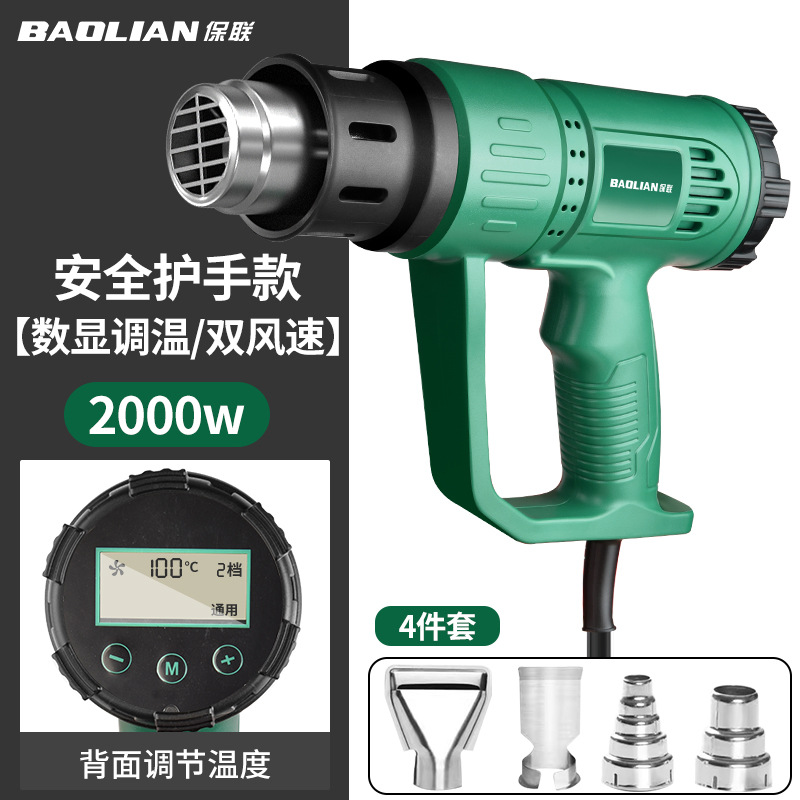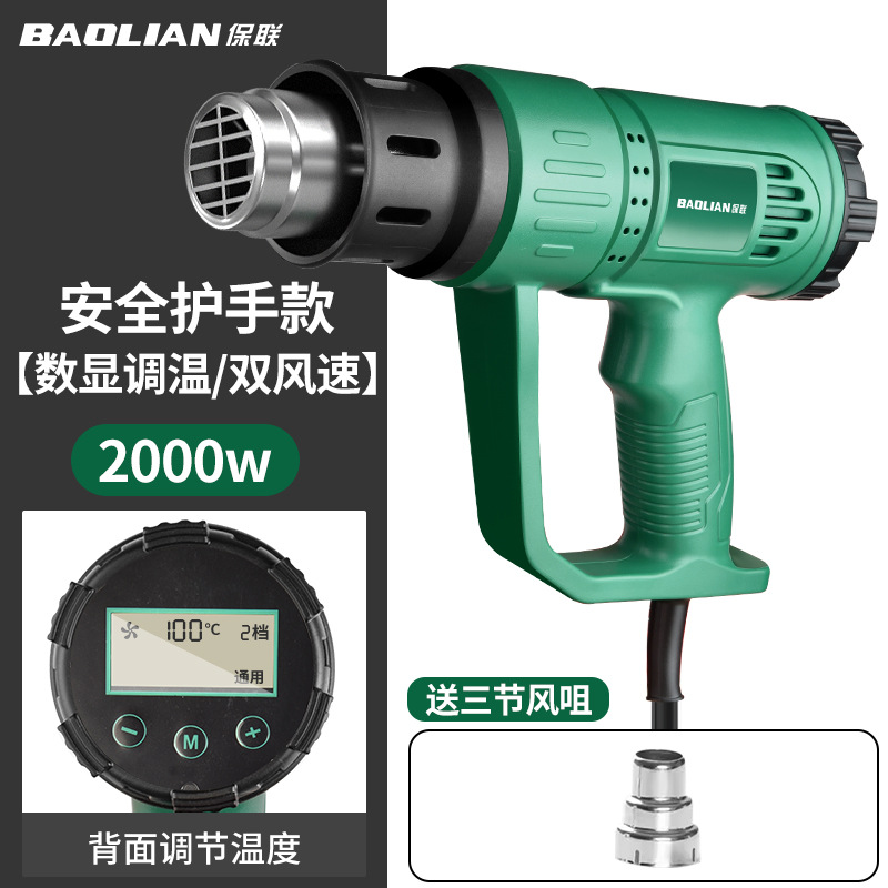 • 안전 손 보호 모델 [디지털 디스플레이 온도 조절/이중 풍속] 2000W (에어 노즐 3개 포함)