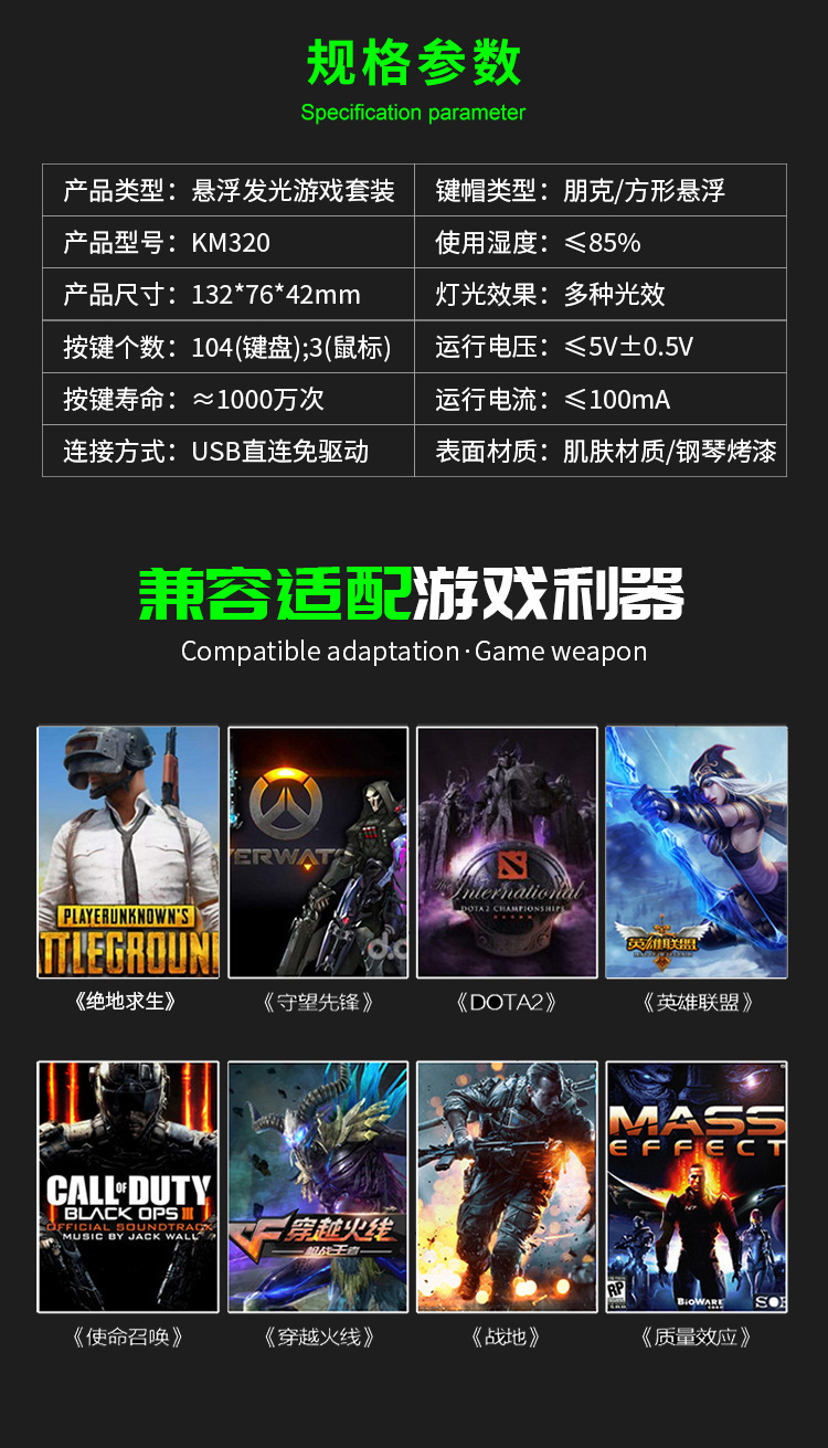 Viper KM320 유선 백라이트 키보드 및 마우스 세트 노트북 게임용 키보드 및 마우스 세트 USB 범용 Amazon스토어 가기