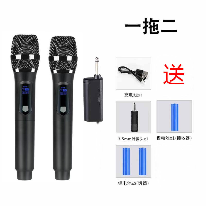 충전식 무선 마이크, 대용량, 1대2, 가정용 KTV 오디오 사운드 카드, 범용 마이크, 공장 직접 판매스토어 가기