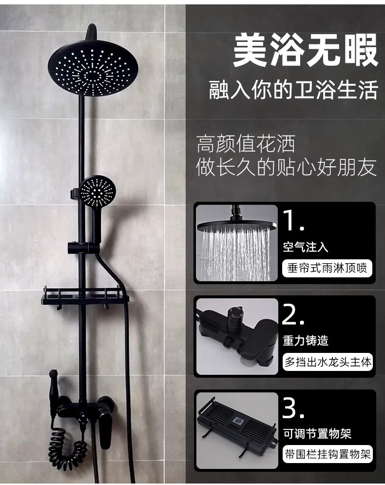 욕실 샤워 헤드 세트 가정용 욕실 블랙 샤워 세트 레인 샤워 헤드 세트 도매