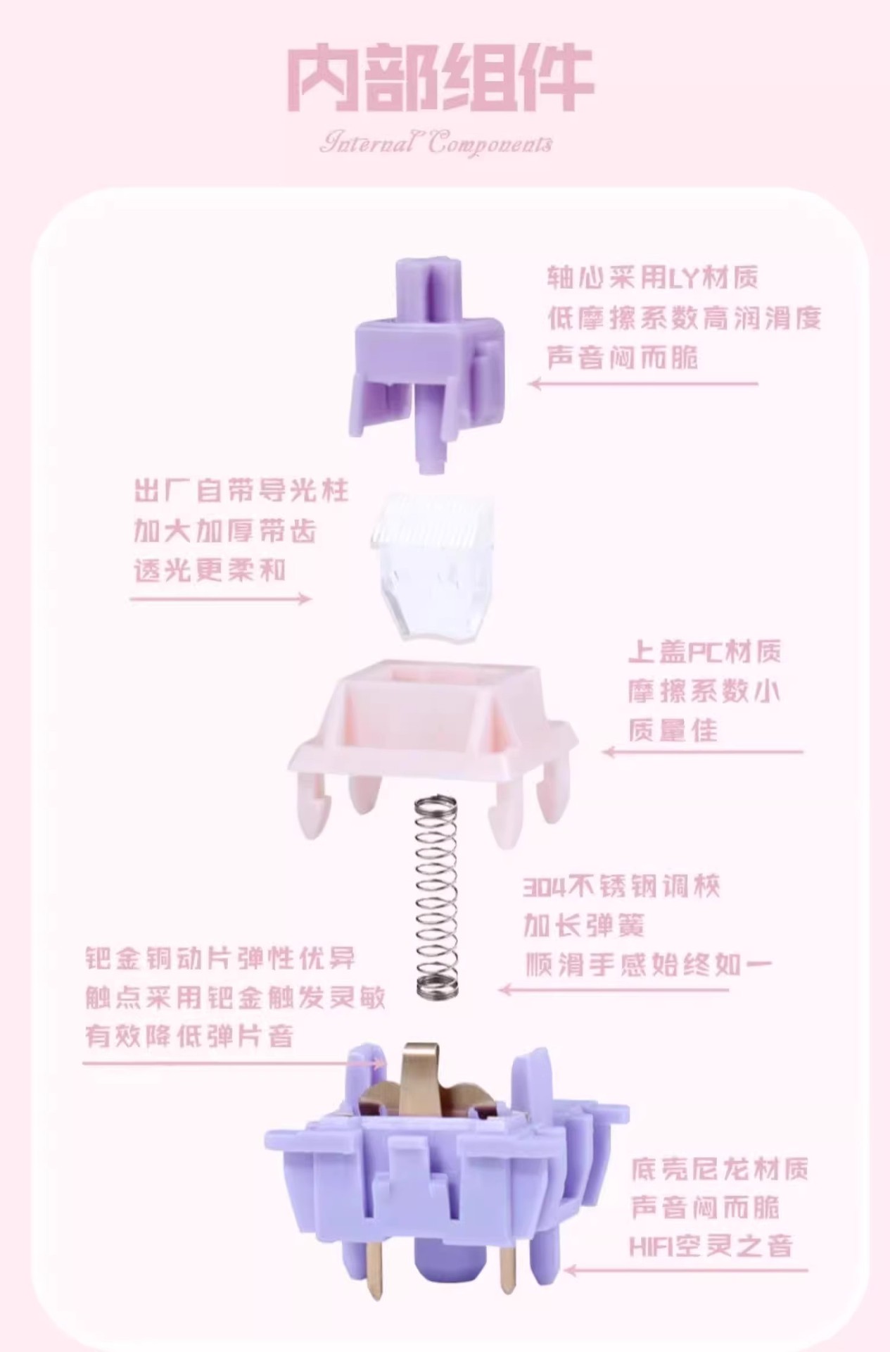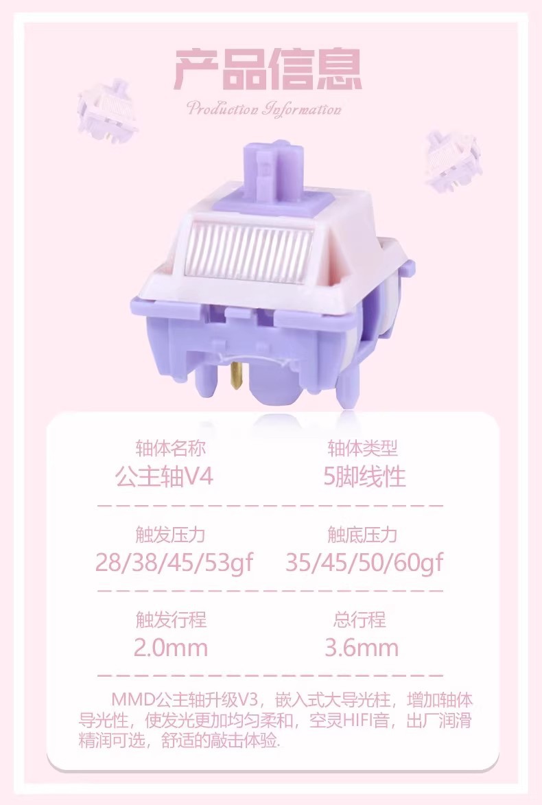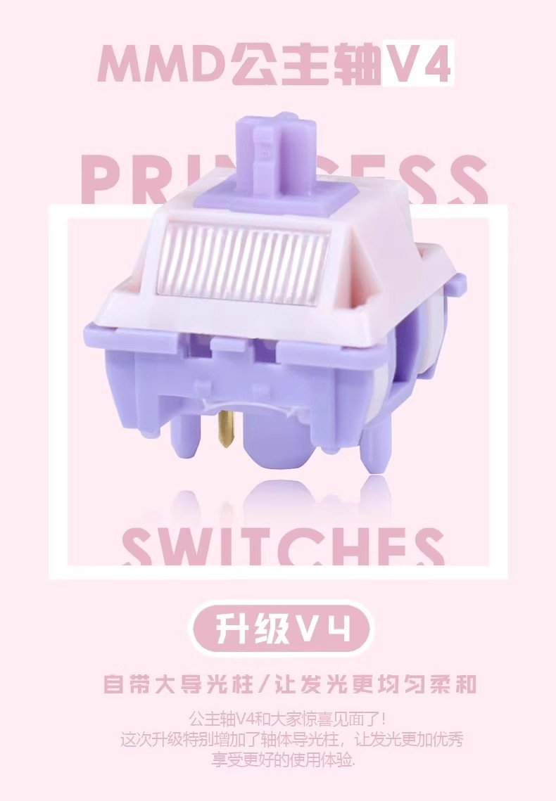 MMD Princess Axis V4 기계식 키보드 교체 축 맞춤형 선형 축 HIFI 사운드 축 본체에는 라이트 가이드 컬럼이 함께 제공됩니다.
