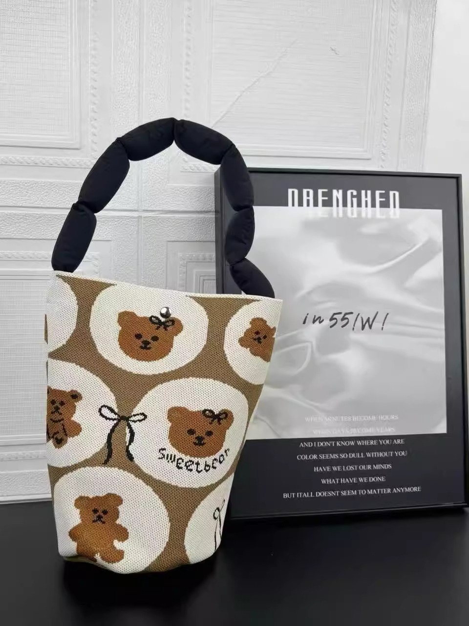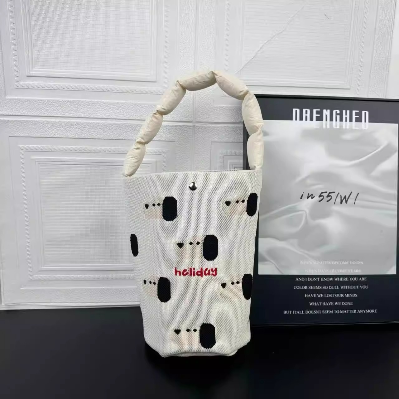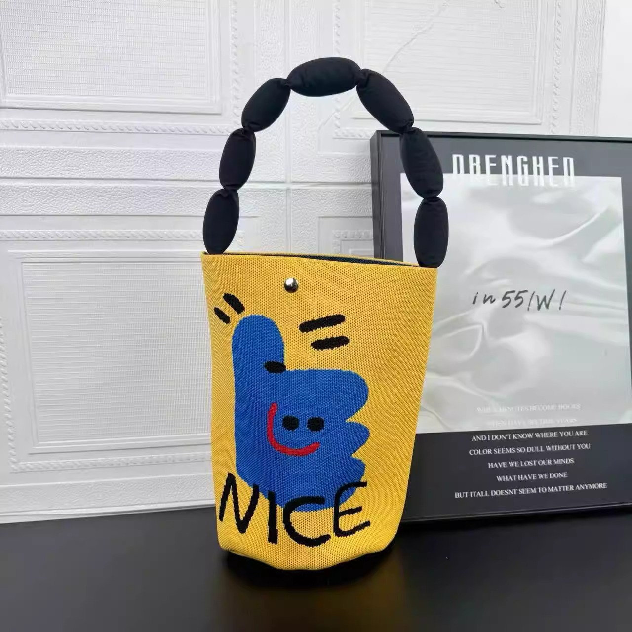 새로운 귀여운 만화 토끼 가방 패션 짠 휴대용 어깨 가방 코튼 충전 스트랩 버킷 겨드랑이 가방