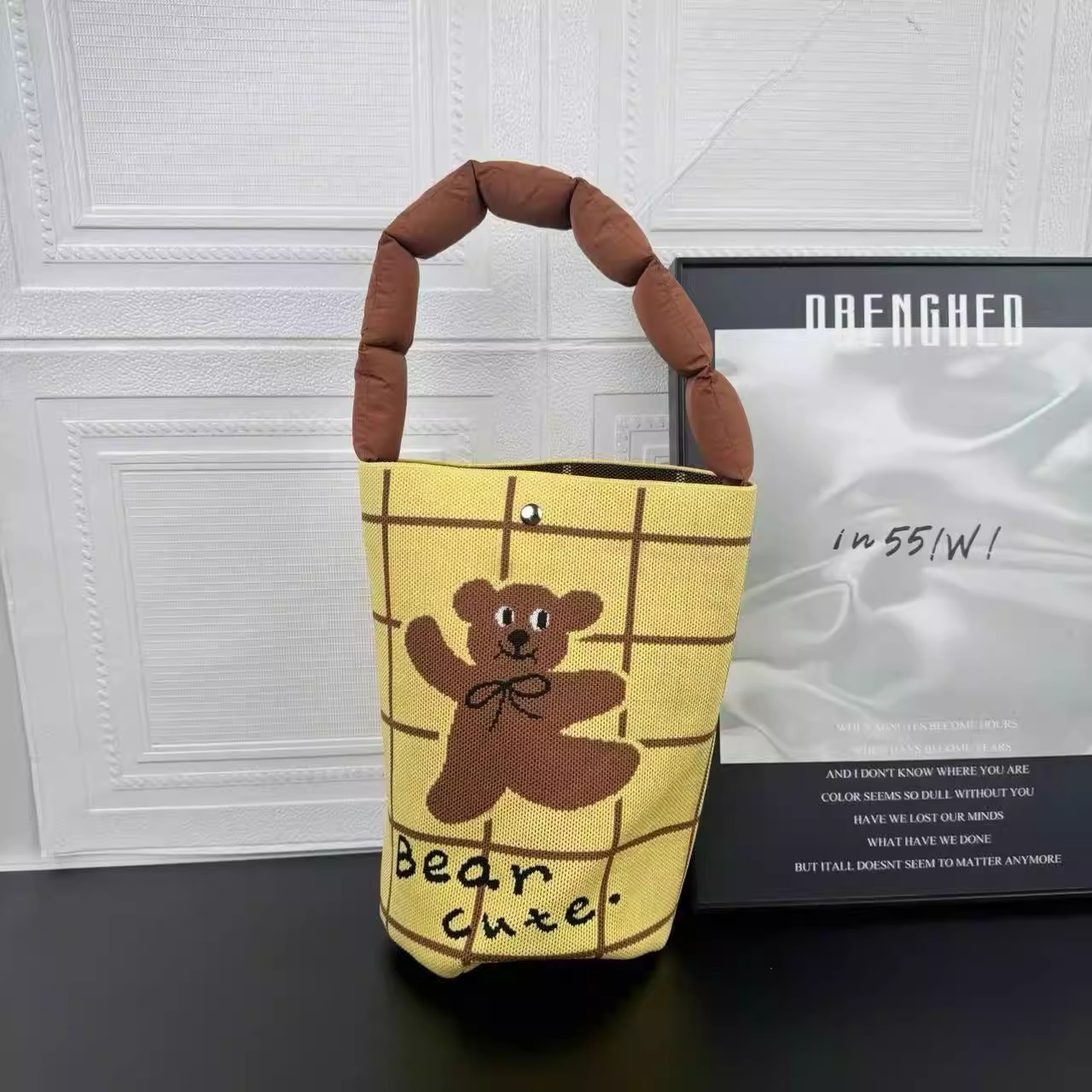 • H-버킷 체크무늬 곰 노란색