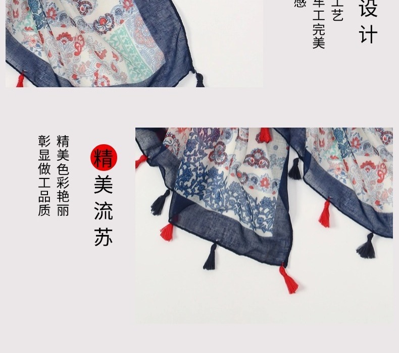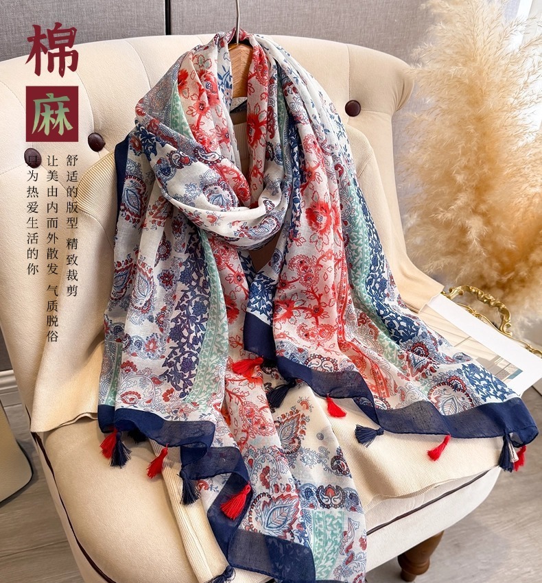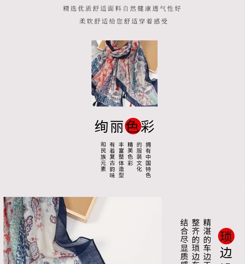 보헤미안 문학 복고풍 면 및 린넨 스카프 얇은 스플라이스 캐슈 프린트 롱 스카프 여행 수염 달린 터번스토어 가기