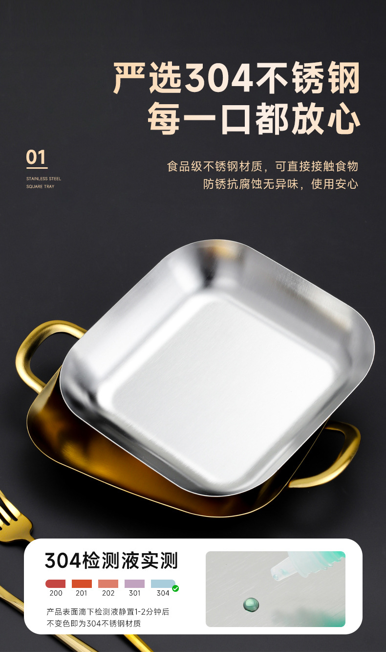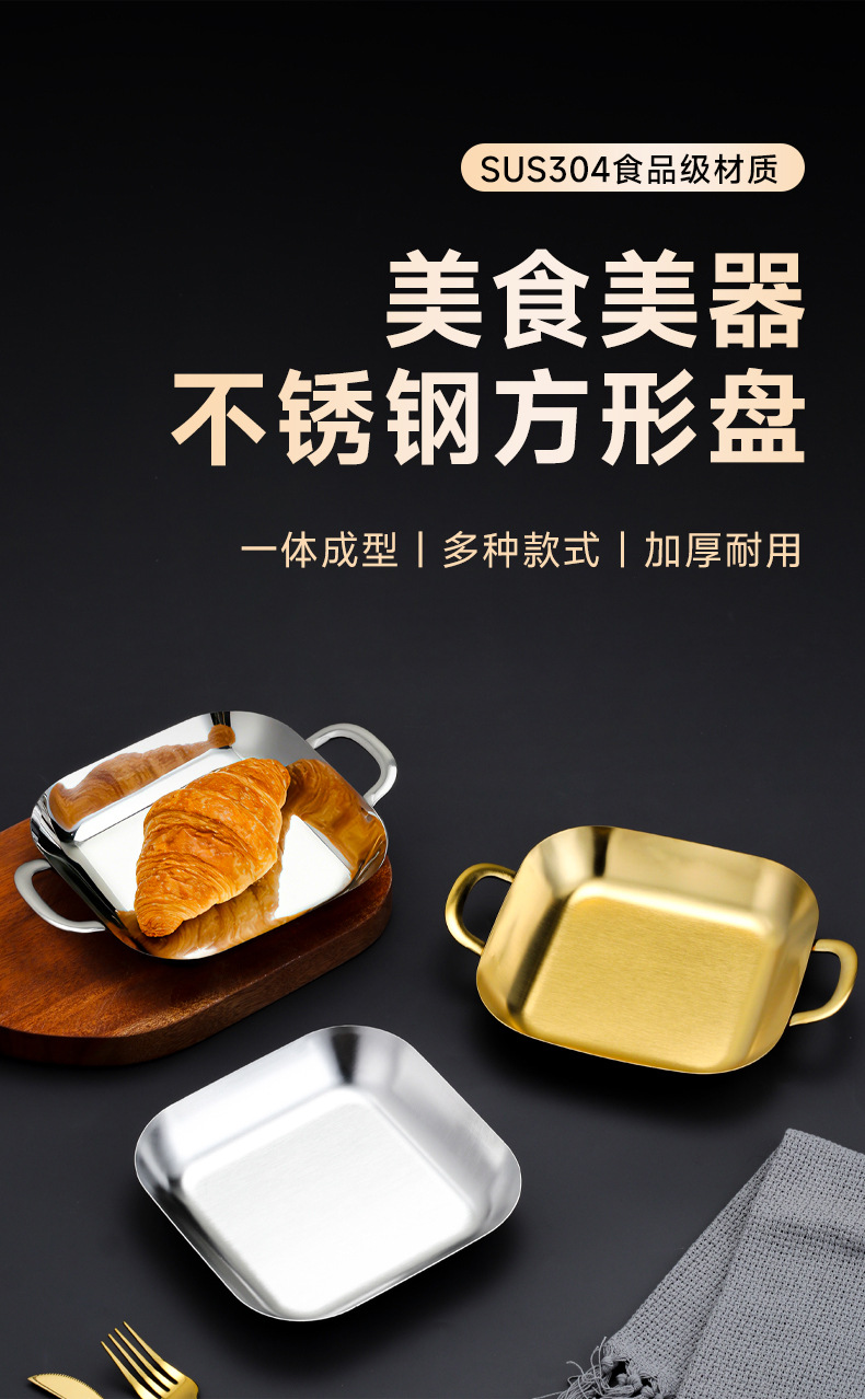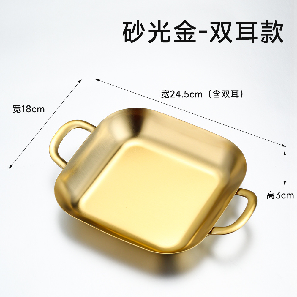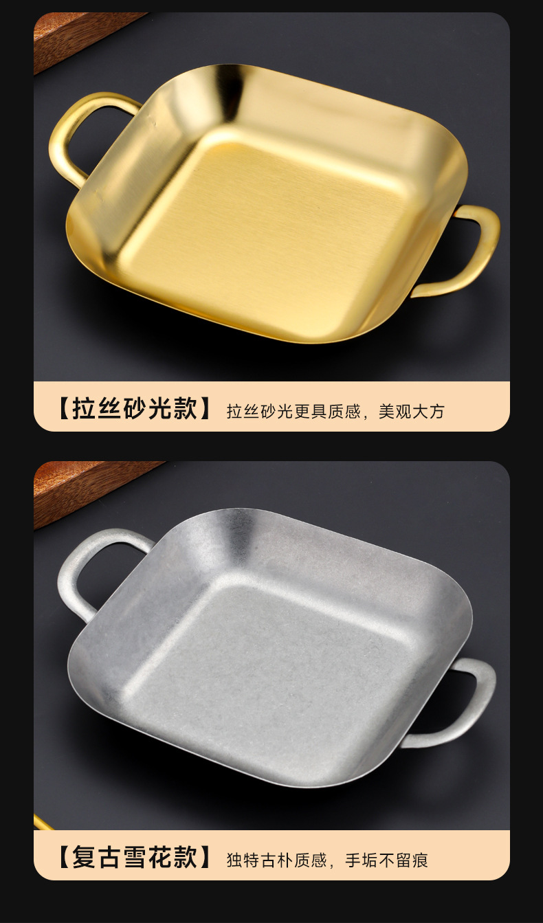 304 스테인레스 스틸 깊은 사각형 접시 황금 양각 스낵 접시 상업용 바베큐 복고풍 접시 스낵 감자 튀김 플랫 트레이