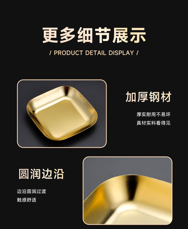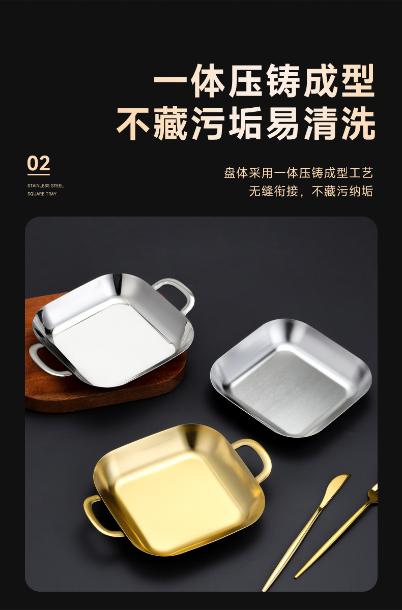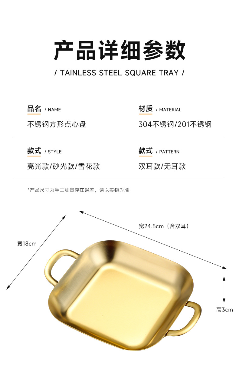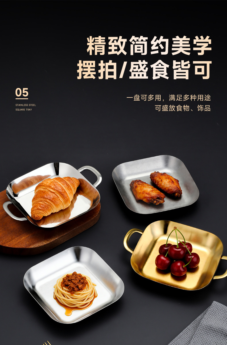 304 스테인레스 스틸 깊은 사각형 접시 황금 양각 스낵 접시 상업용 바베큐 복고풍 접시 스낵 감자 튀김 플랫 트레이