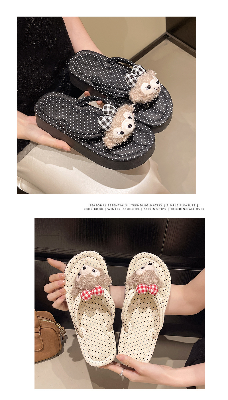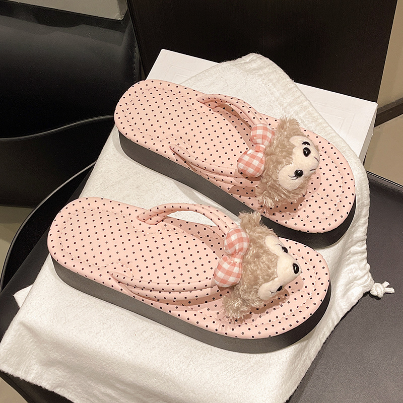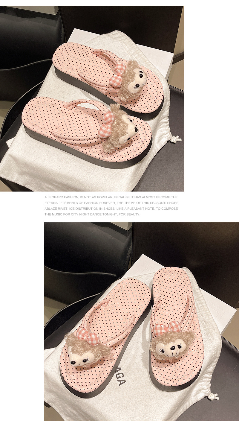 여성용 달콤한 폴카 도트 슬리퍼, 귀여운 만화 여름 아우터 슬리퍼, 두꺼운 밑창 높이 슬리퍼, 해변 해변 신발