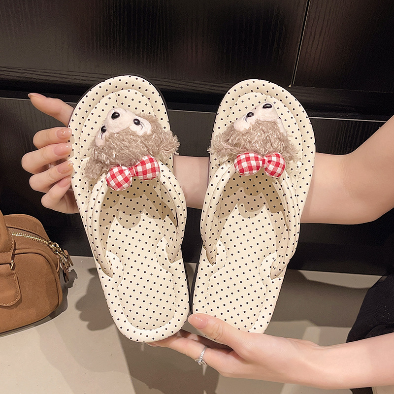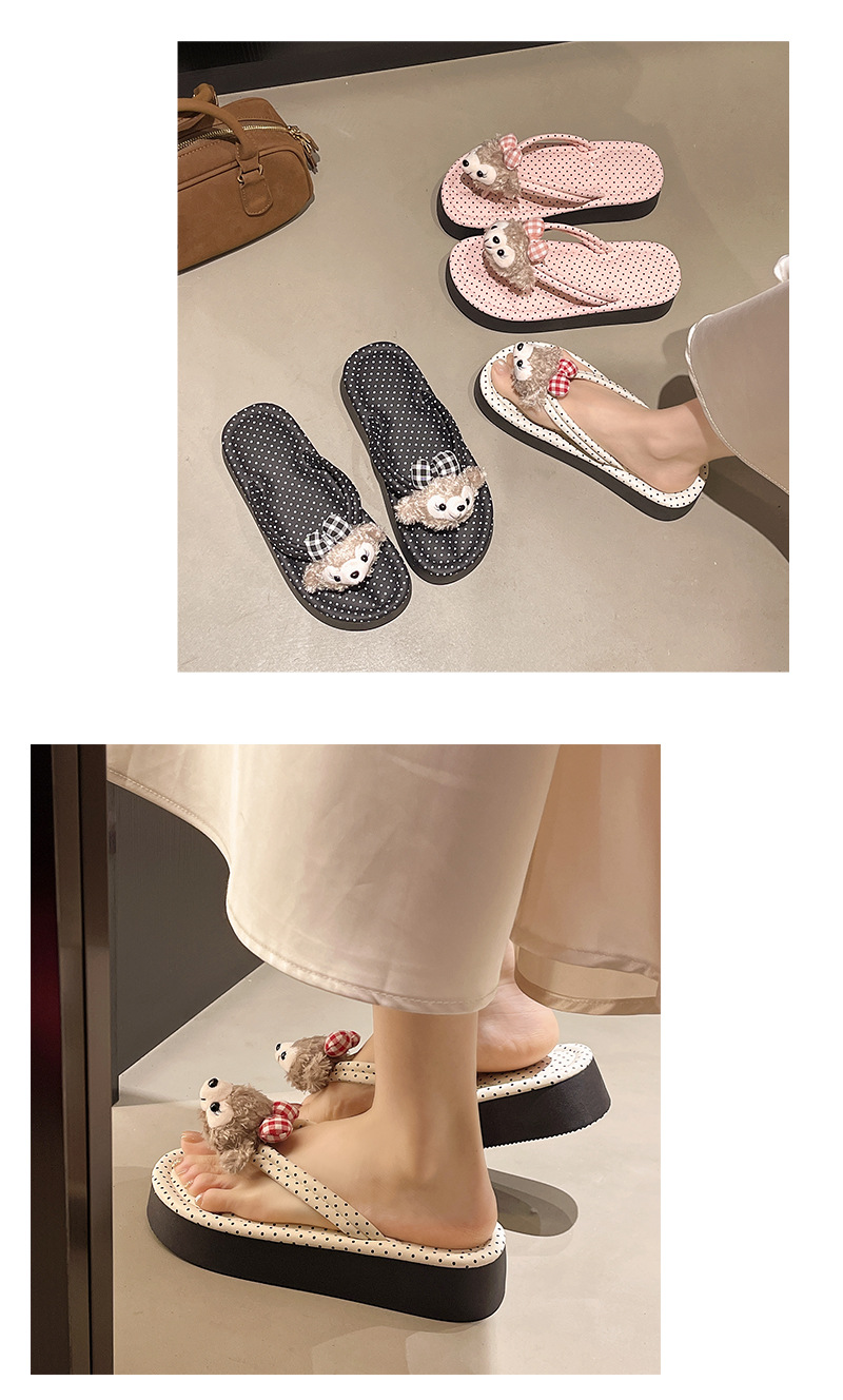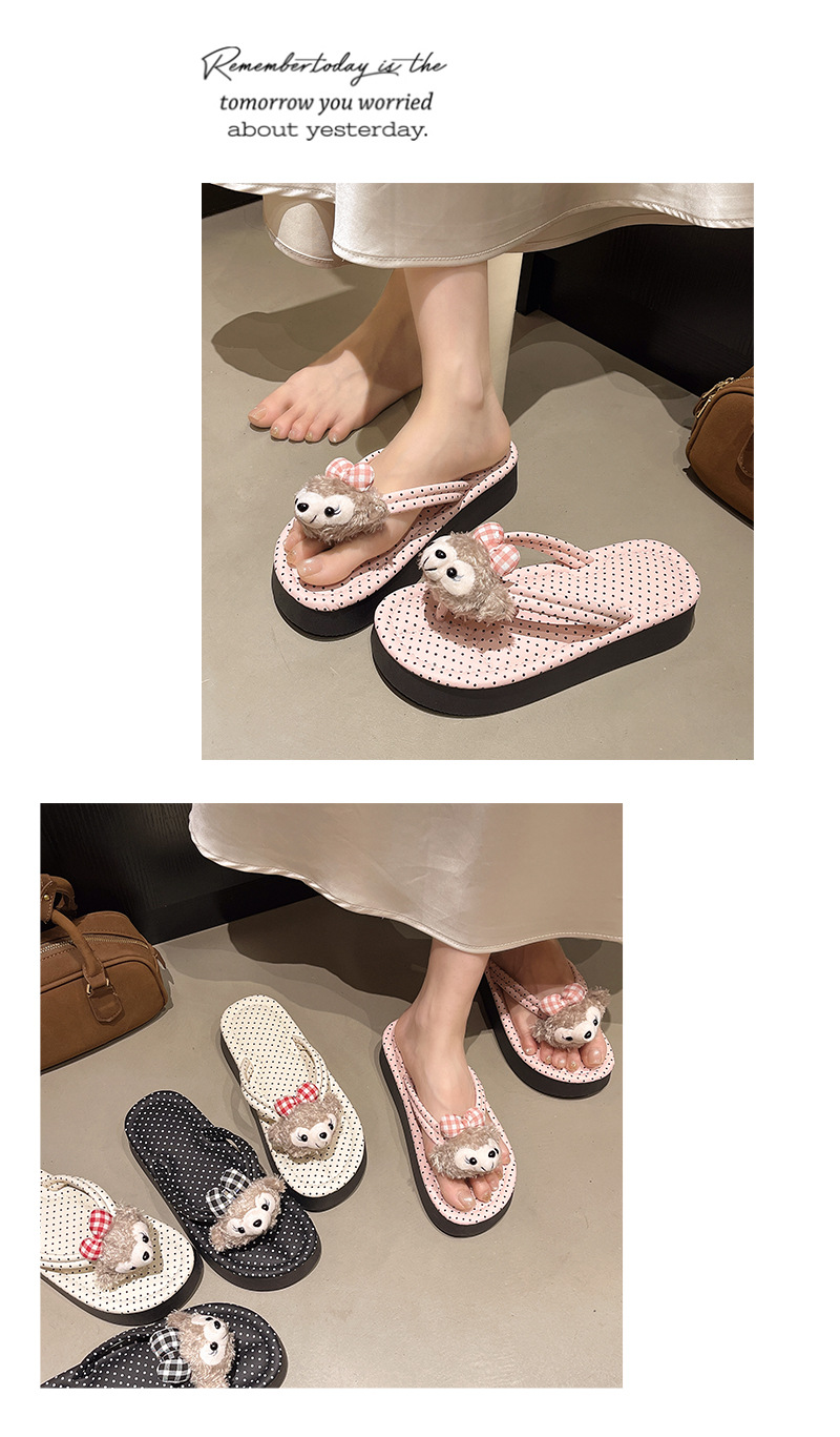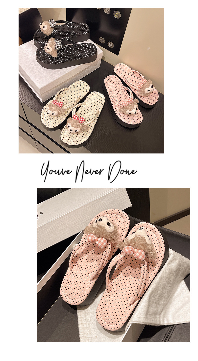 여성용 달콤한 폴카 도트 슬리퍼, 귀여운 만화 여름 아우터 슬리퍼, 두꺼운 밑창 높이 슬리퍼, 해변 해변 신발