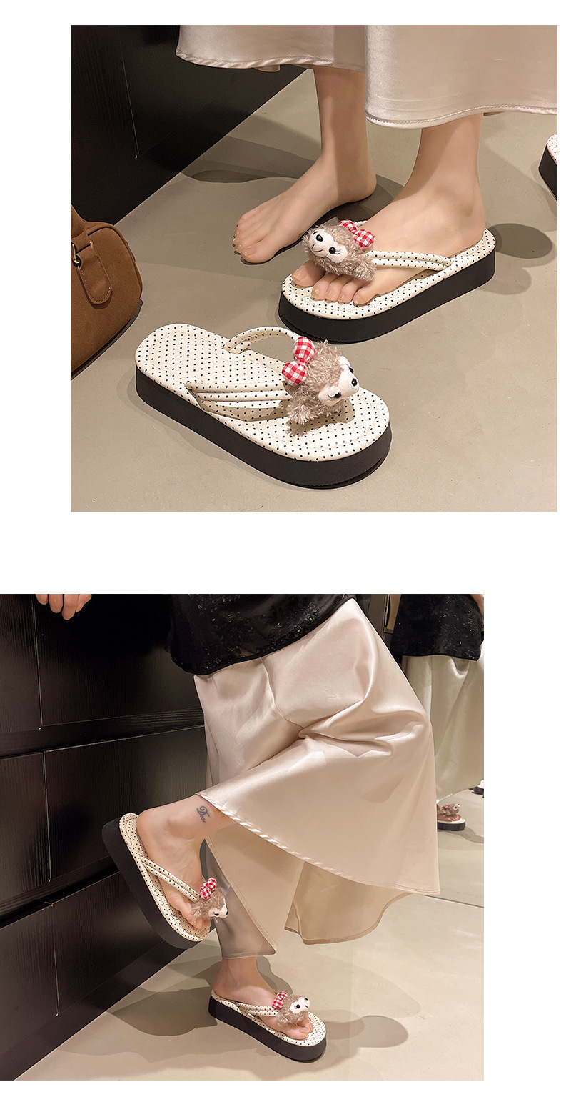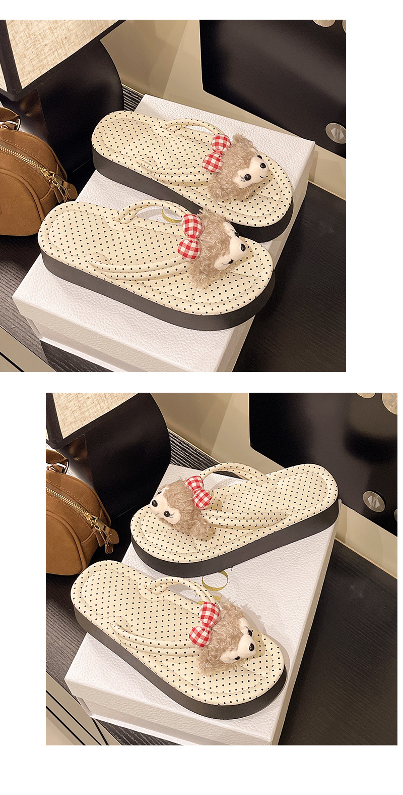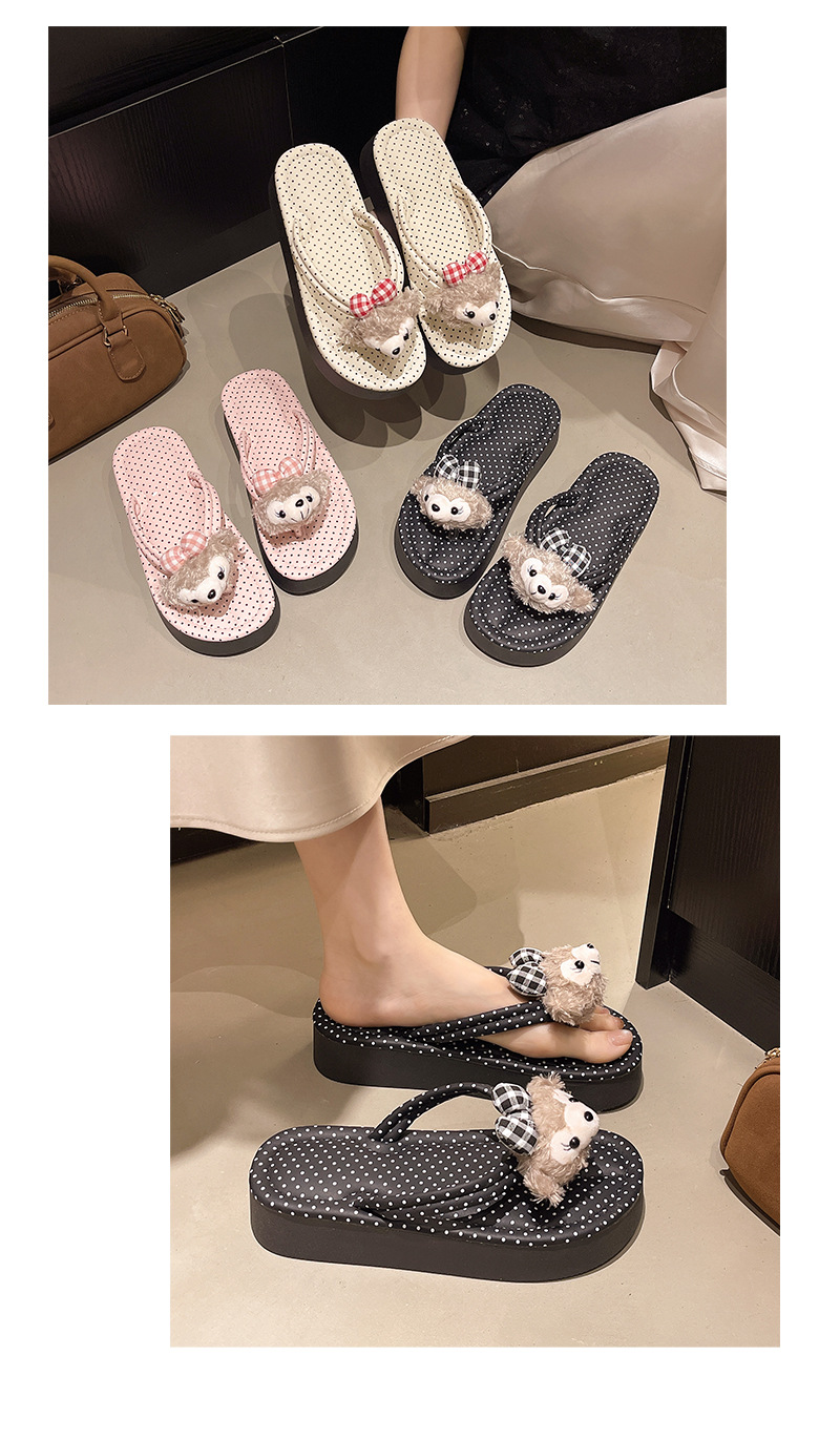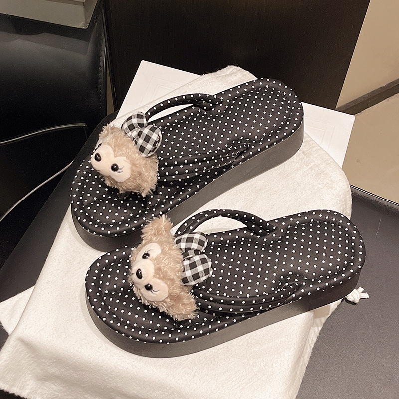 여성용 달콤한 폴카 도트 슬리퍼, 귀여운 만화 여름 아우터 슬리퍼, 두꺼운 밑창 높이 슬리퍼, 해변 해변 신발스토어 가기