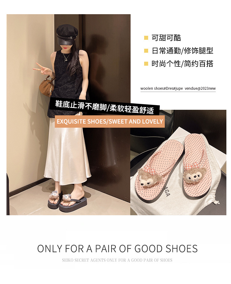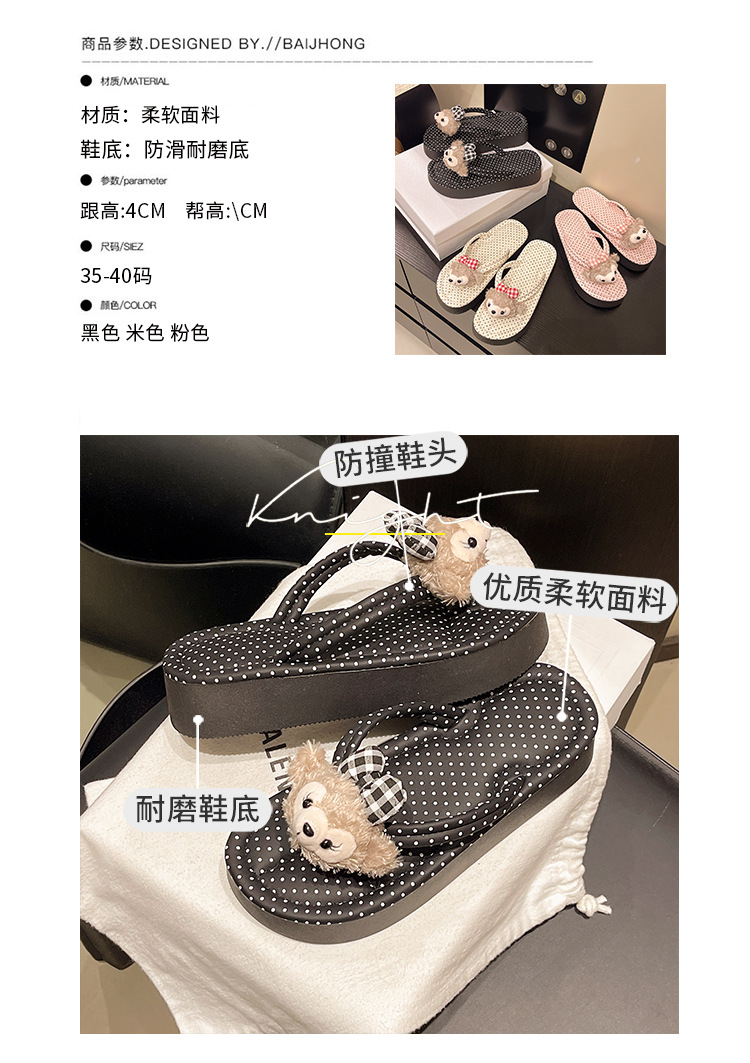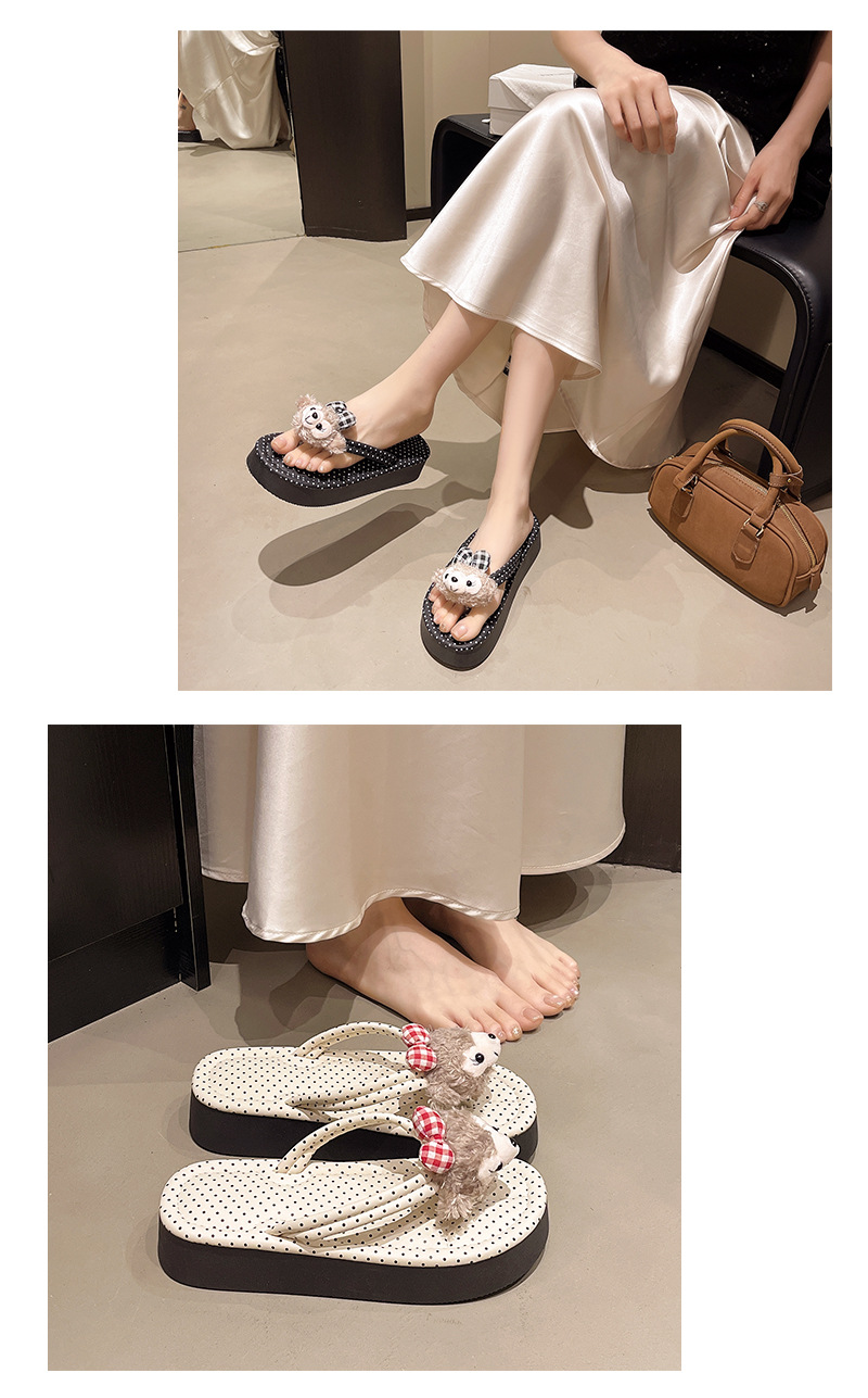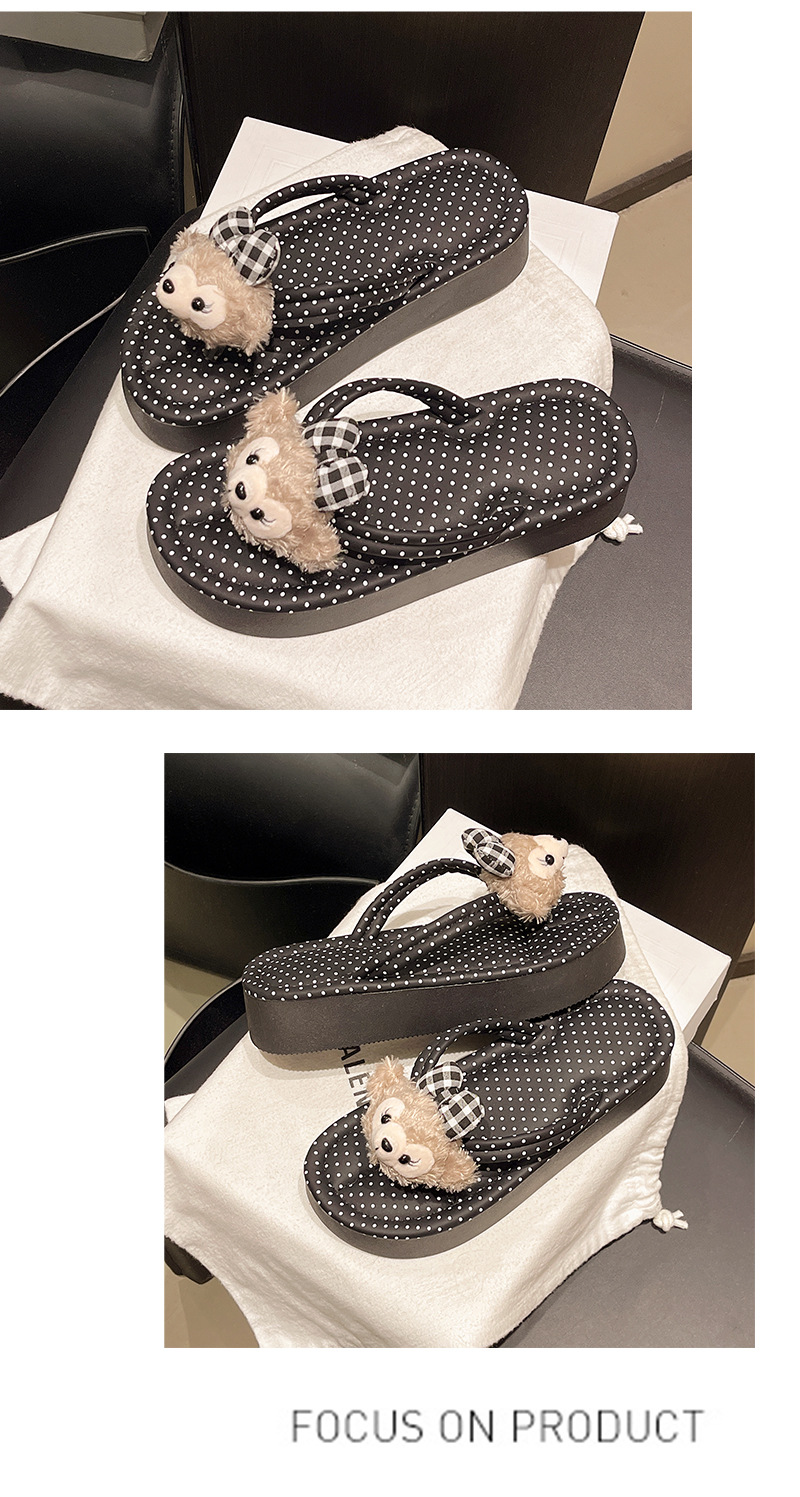 여성용 달콤한 폴카 도트 슬리퍼, 귀여운 만화 여름 아우터 슬리퍼, 두꺼운 밑창 높이 슬리퍼, 해변 해변 신발스토어 가기
