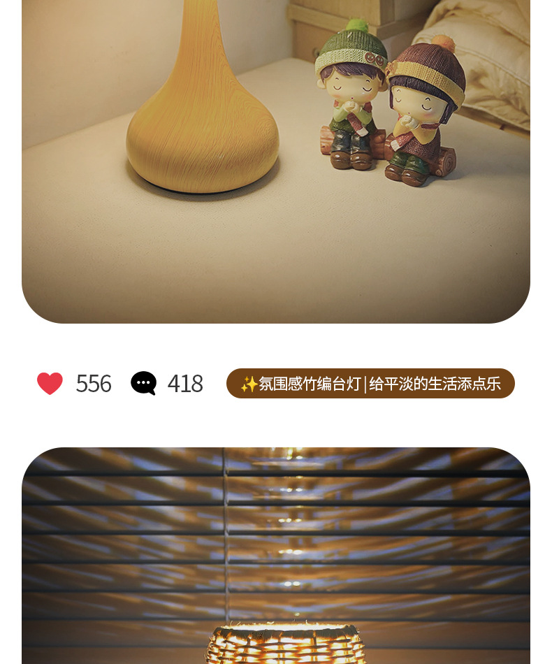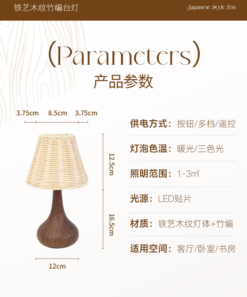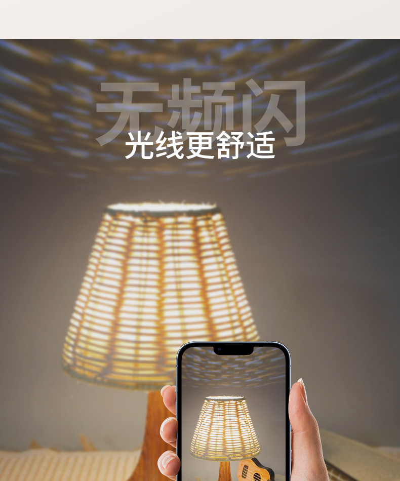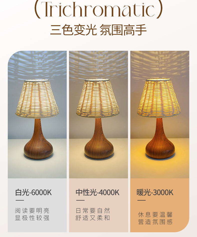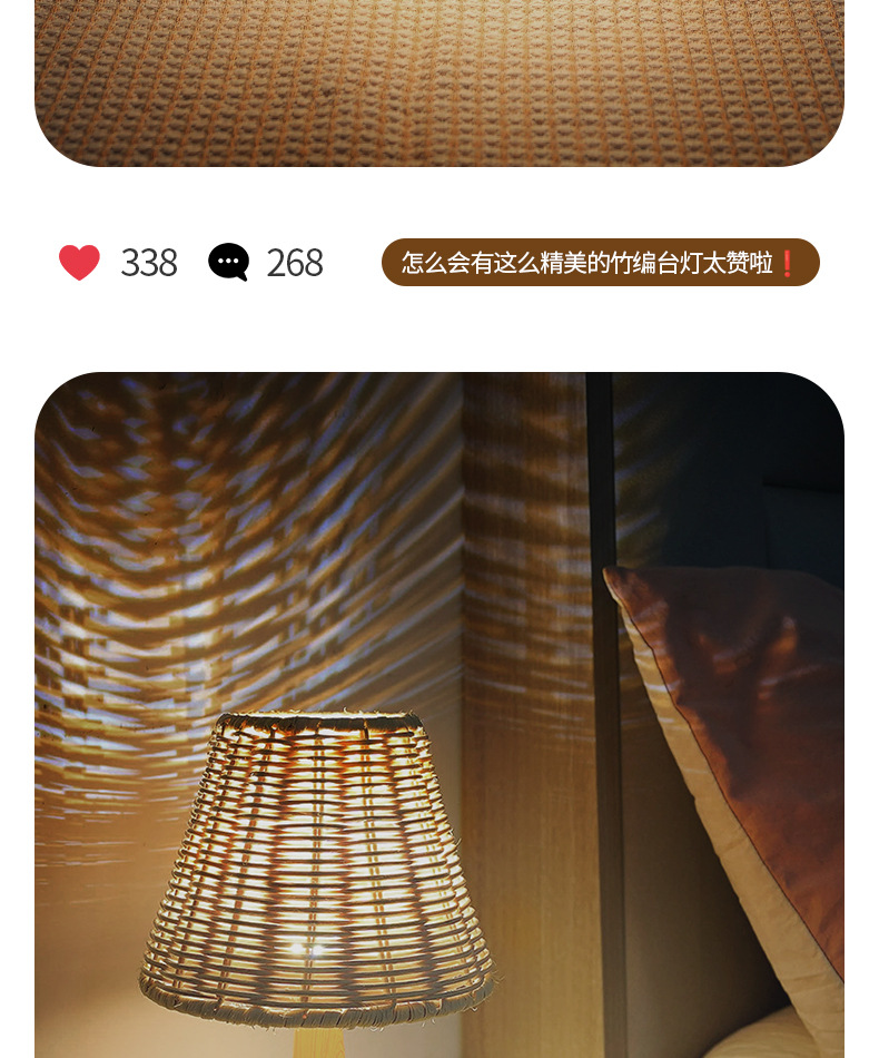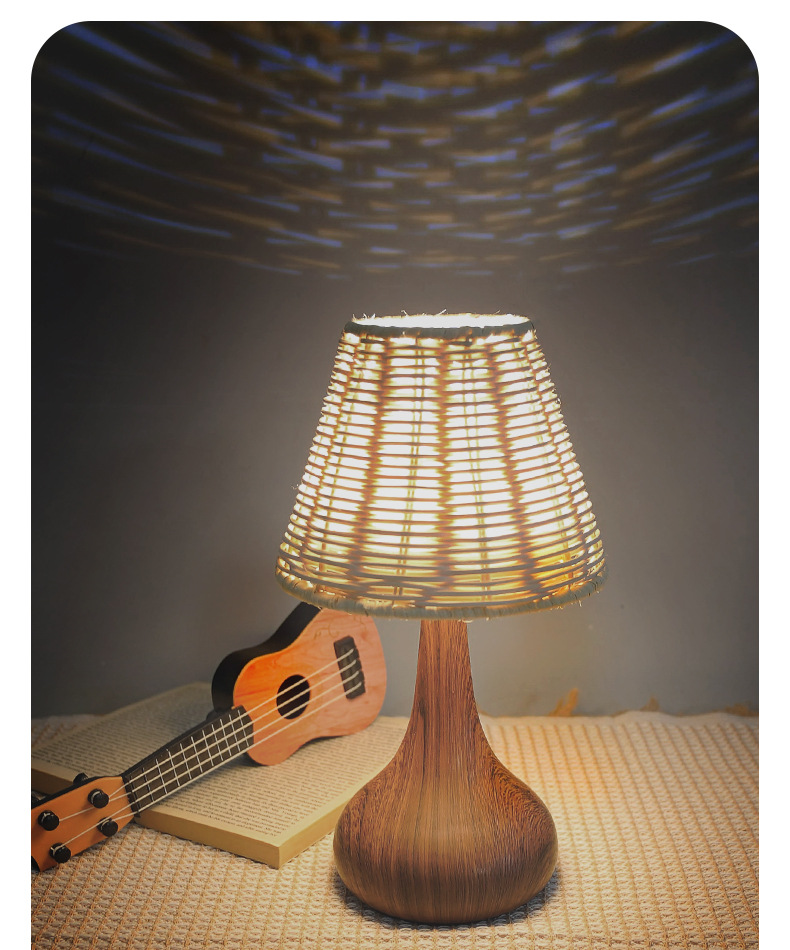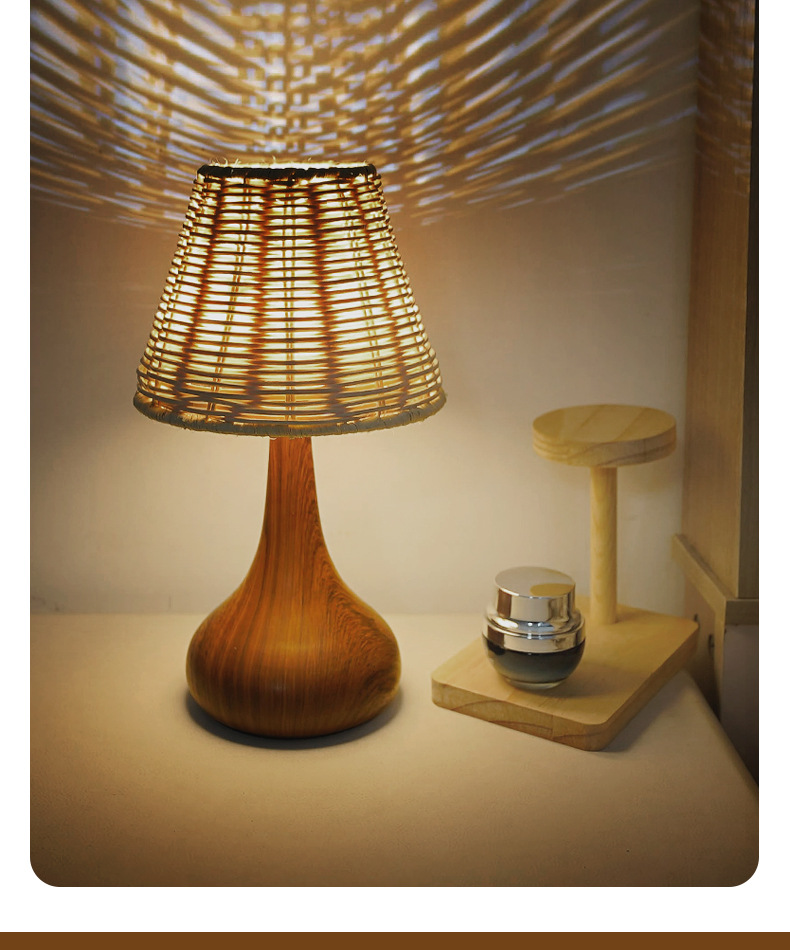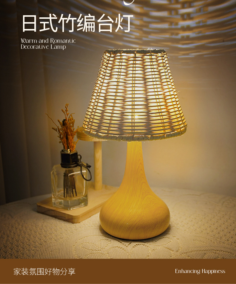 복고풍 문학 스타일 야간 조명 침실 수면 중세 와비사비 낭만적 인 장식 창조적 인 침대 옆 목가적 인 대나무 테이블 램프스토어 가기