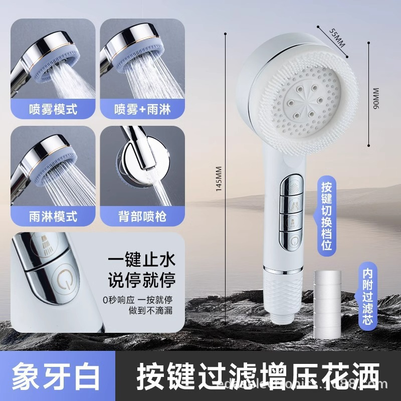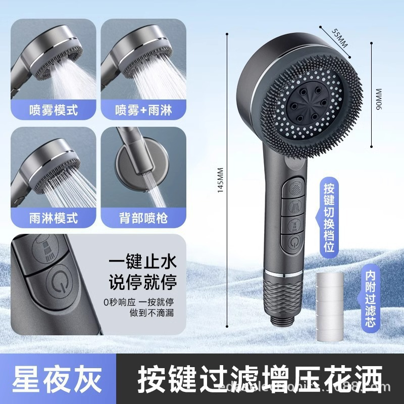 • [과부하로 피부에 해롭지 않음] 마사지 필터 샤워헤드(6세대) ● 마사지 실리콘 브러시 포함)