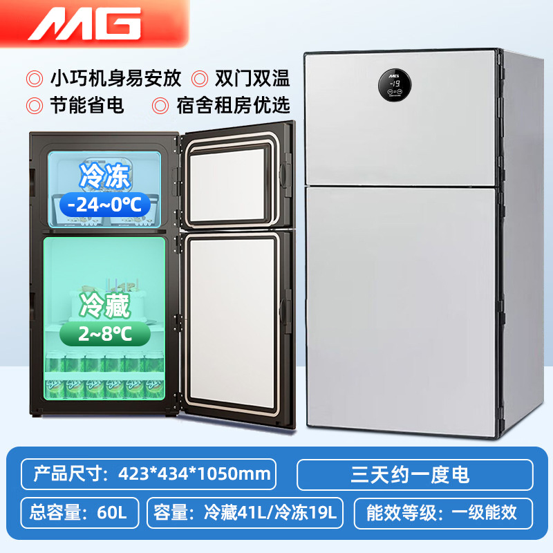 MG 소형 냉장고 이중 도어 이중 온도 이중 제어 컴퓨터 정밀 온도 제어 기숙사 홈 스마트 냉동 냉장 에너지 절약 임대