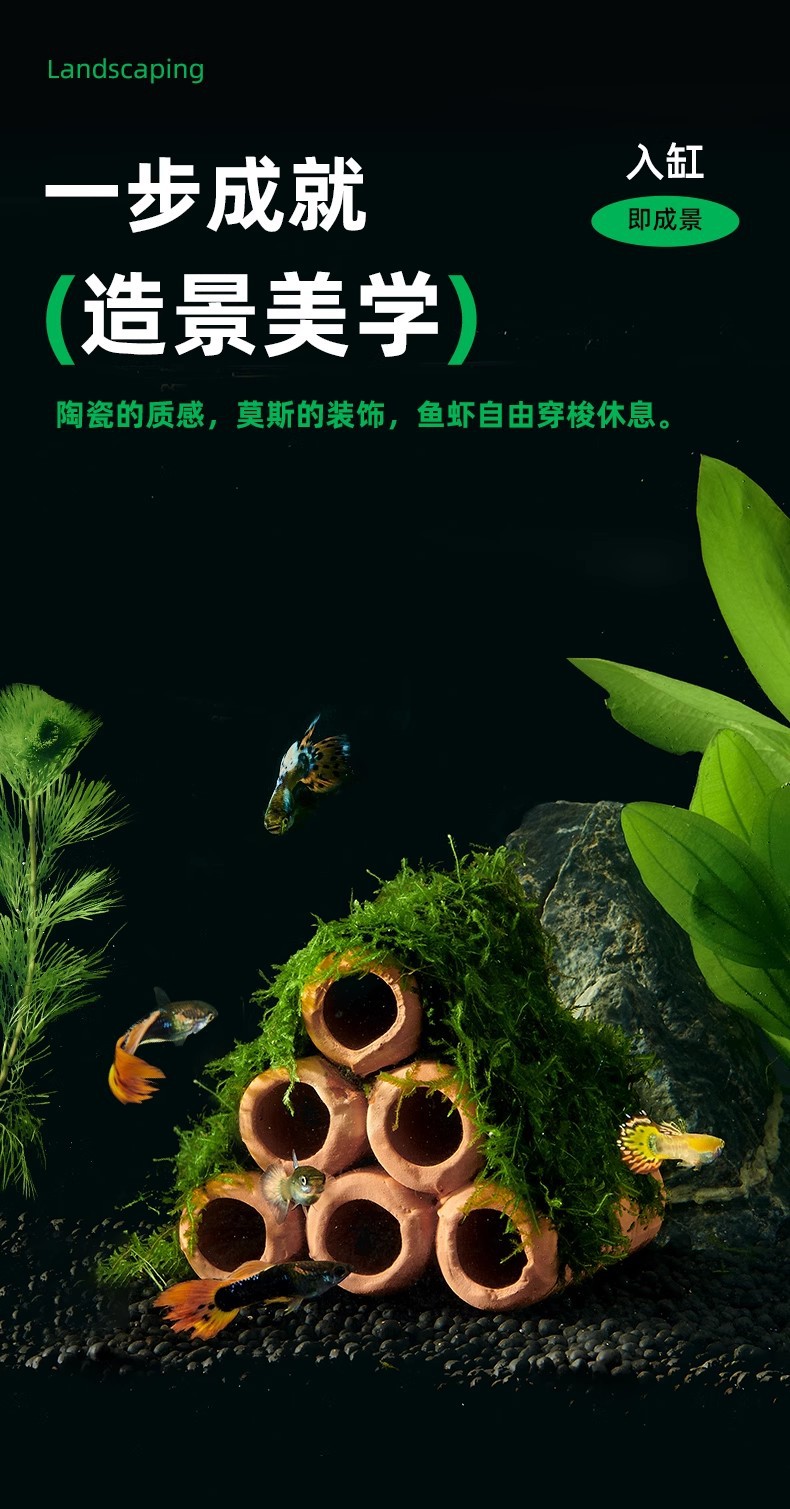 어항 장식용 이끼 수초 식물 장식품 도자기 항아리 물고기 새우 은신처 번식통 계류석