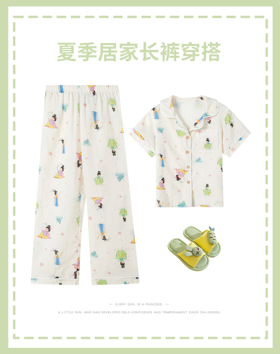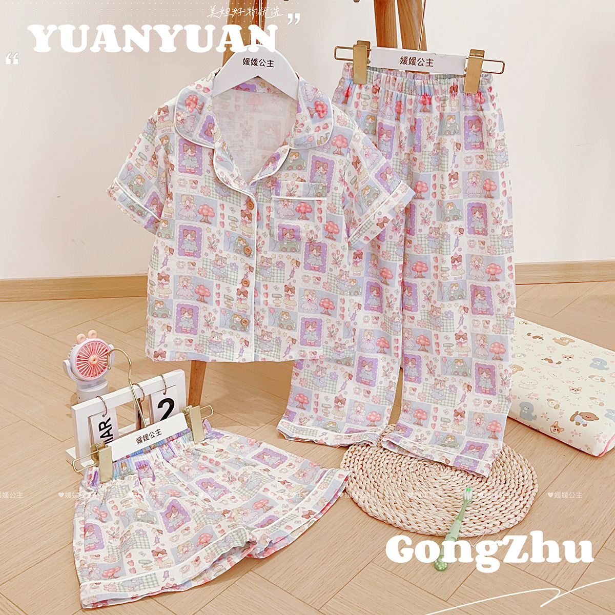 Yuan Yuan Princess 2025 새로운 여름 스타일 여아, 중대형 어린이 중국 스타일 가정복 세트 3피스 순면