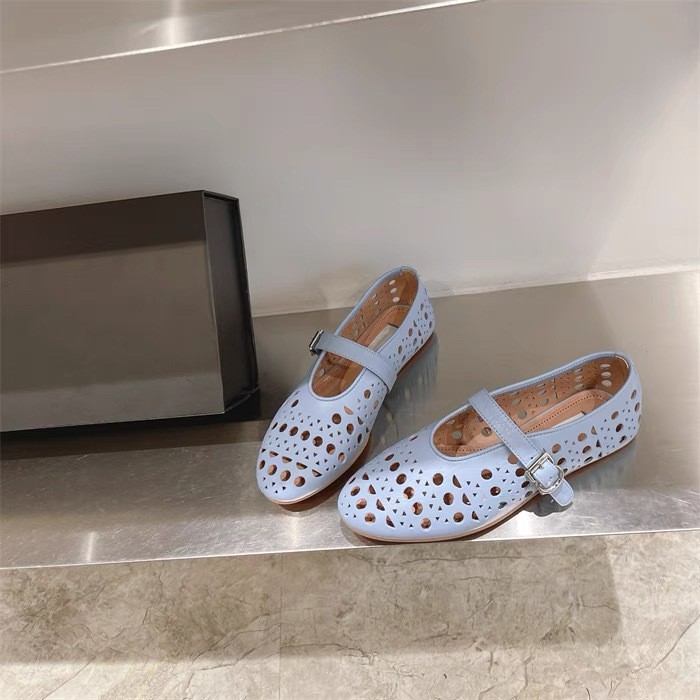 양가죽 버전 ~ 봄 여름 신상 슈퍼플랫 버클 스트랩 중공 라운드 토 플랫 슈즈 여성용 발레 보트 슈즈스토어 가기