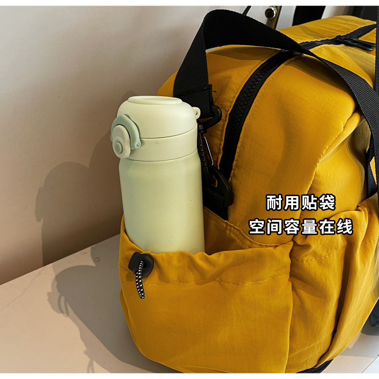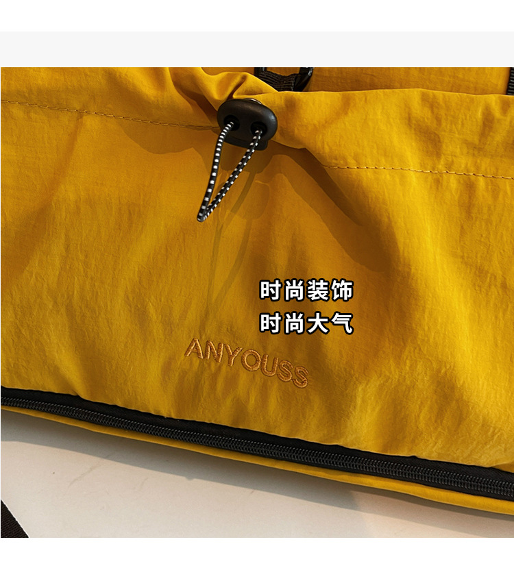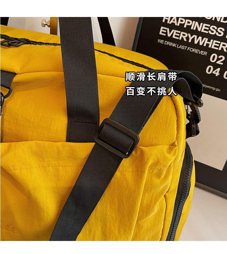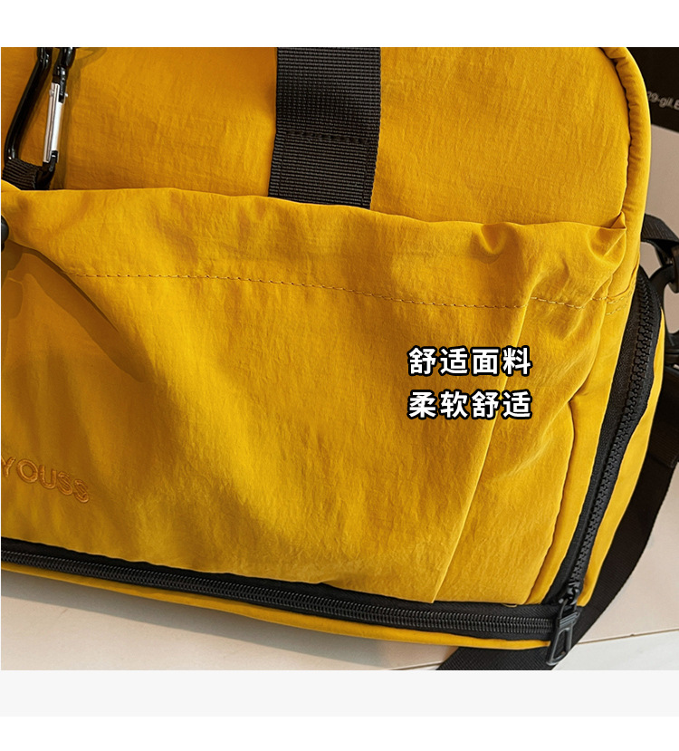 这个款式是塔斯隆面料,做了加厚的设计,质感立体感特别好,前面刺绣字母,凸显品牌,也可以定做自己的品牌logo,底部可以扩容增加容量,有防水袋,方便出行,也可以套在拉杆上面做搭配,单肩斜挎都可以,是有长肩带的,需要这个款式的老板可以联系我们,量大可以定制颜色