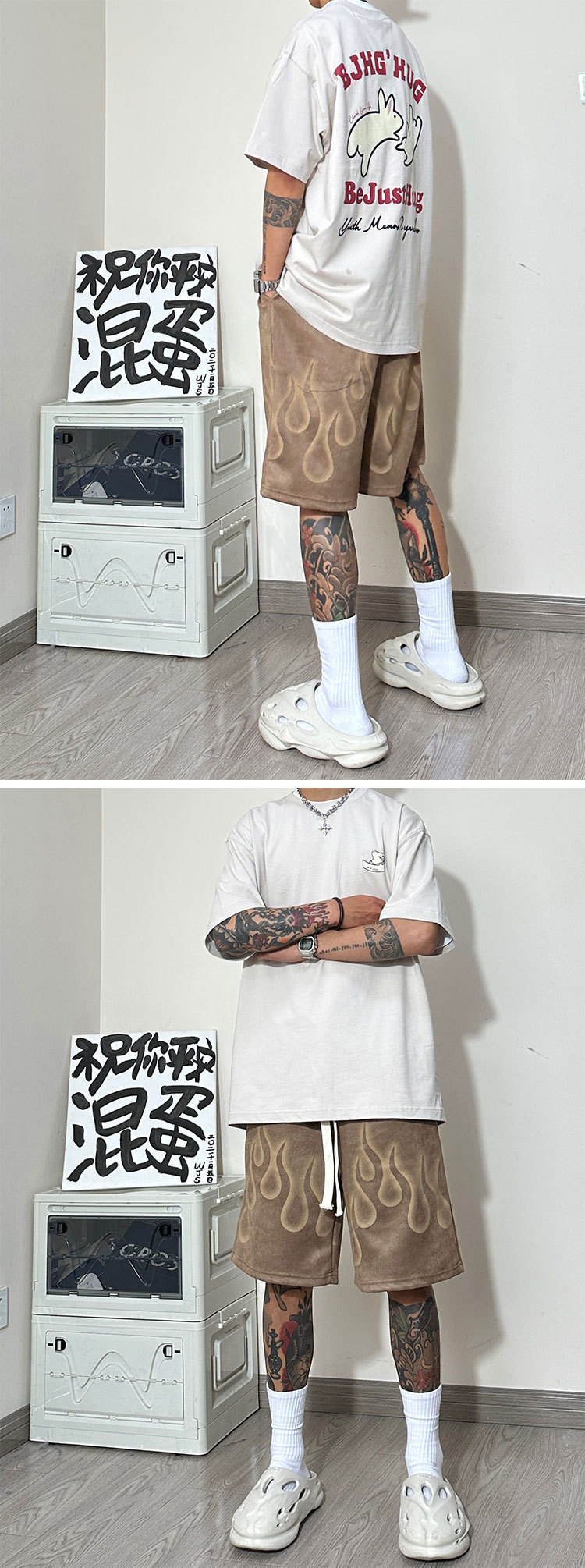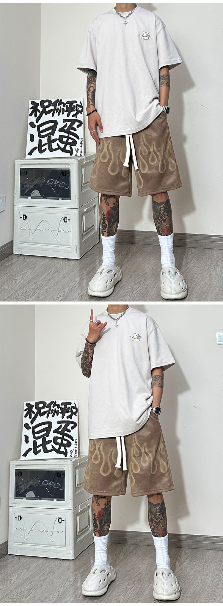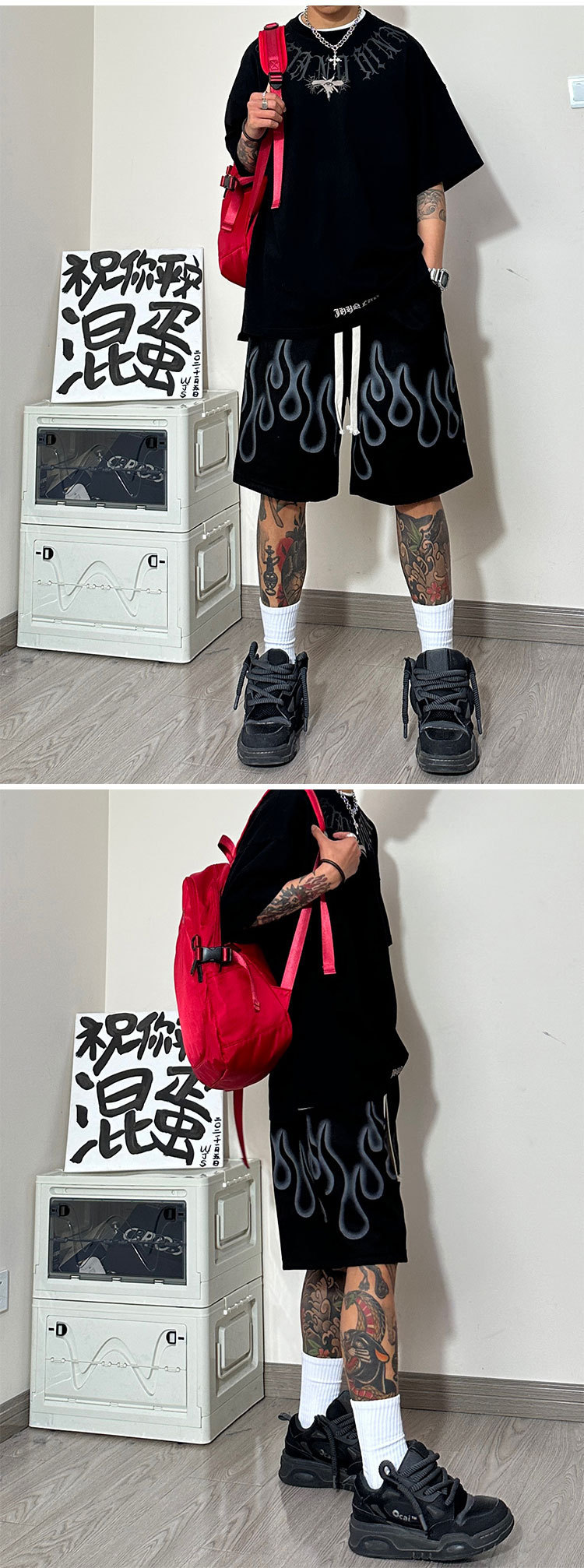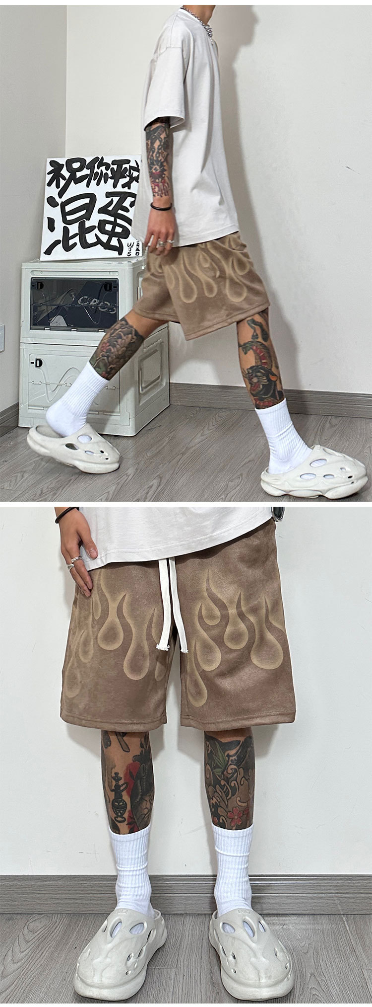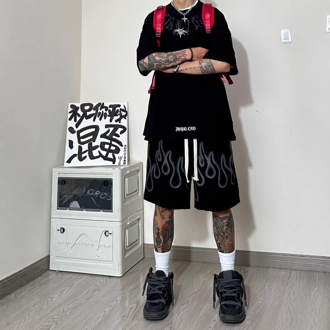 Yabi 스타일 불꽃 반바지 남성 여름 미국 농구 스포츠 바지 무릎 위 5부 바지 러닝 하프 바지