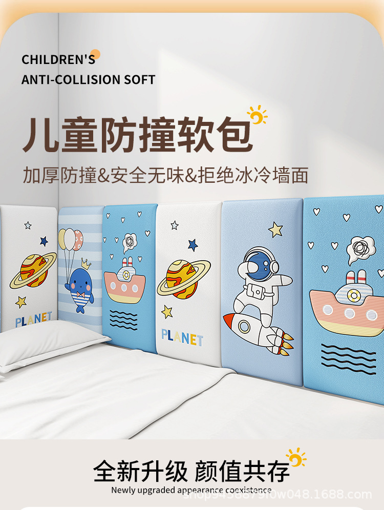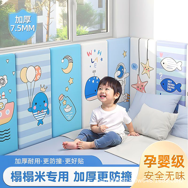 BR 다다미 침대 머리맡 충돌 방지 소프트 패드 등받이 어린이 방 자가 접착 벽 스티커 방수 단열 침대 벽지스토어 가기