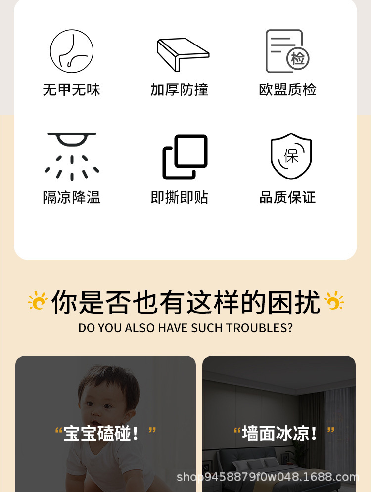 BR 다다미 침대 머리맡 충돌 방지 소프트 패드 등받이 어린이 방 자가 접착 벽 스티커 방수 단열 침대 벽지