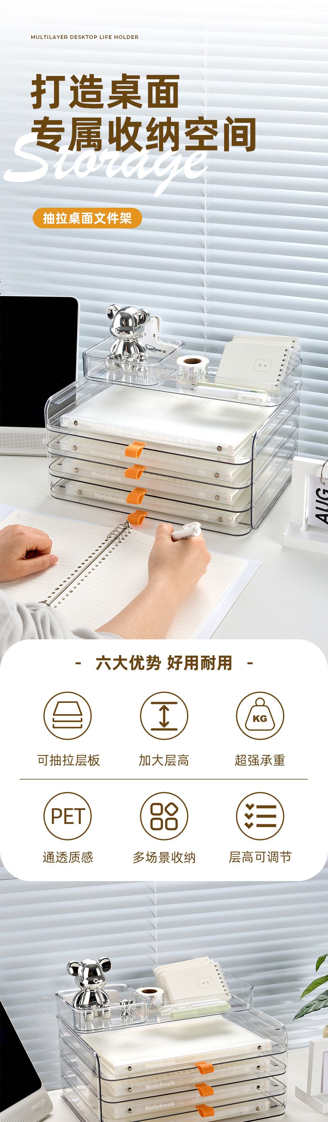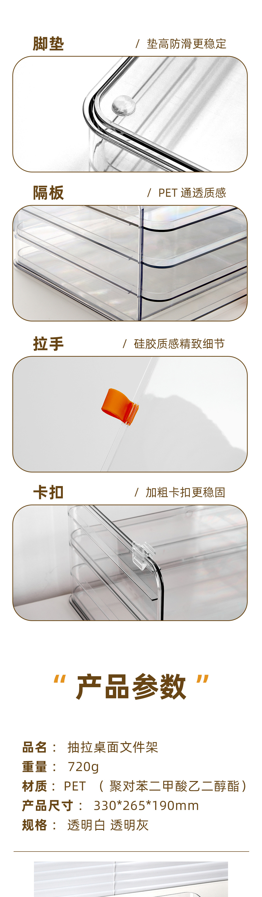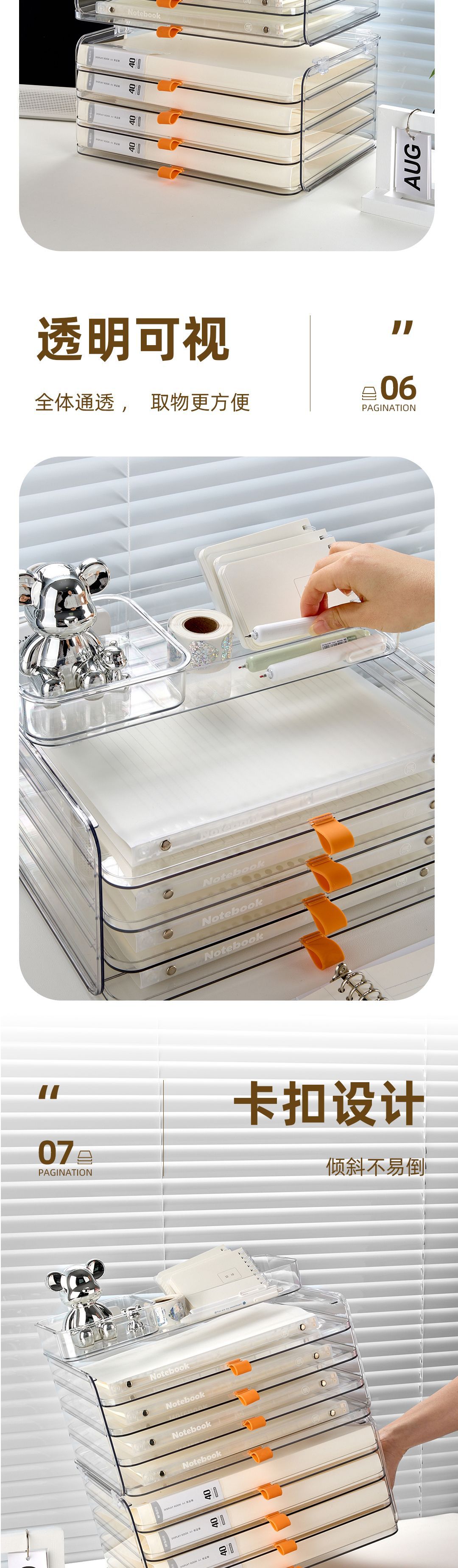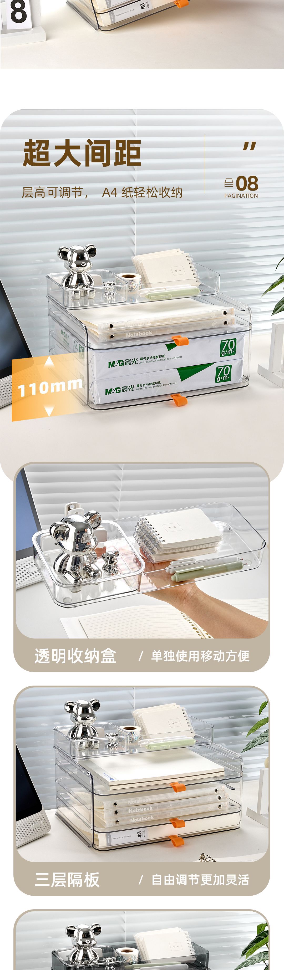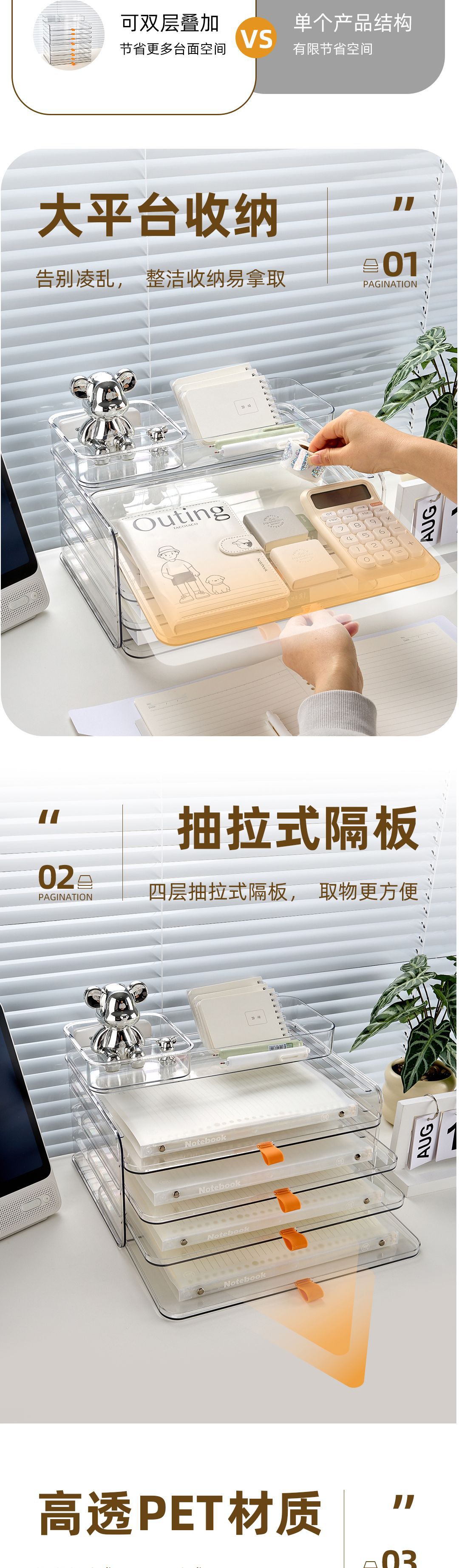 • [투명한 흰색 8단 길고 짧은 박스 스타일] 고투명 PET 소재