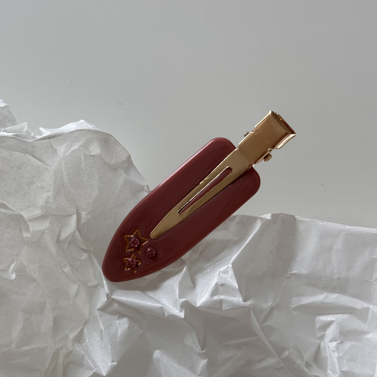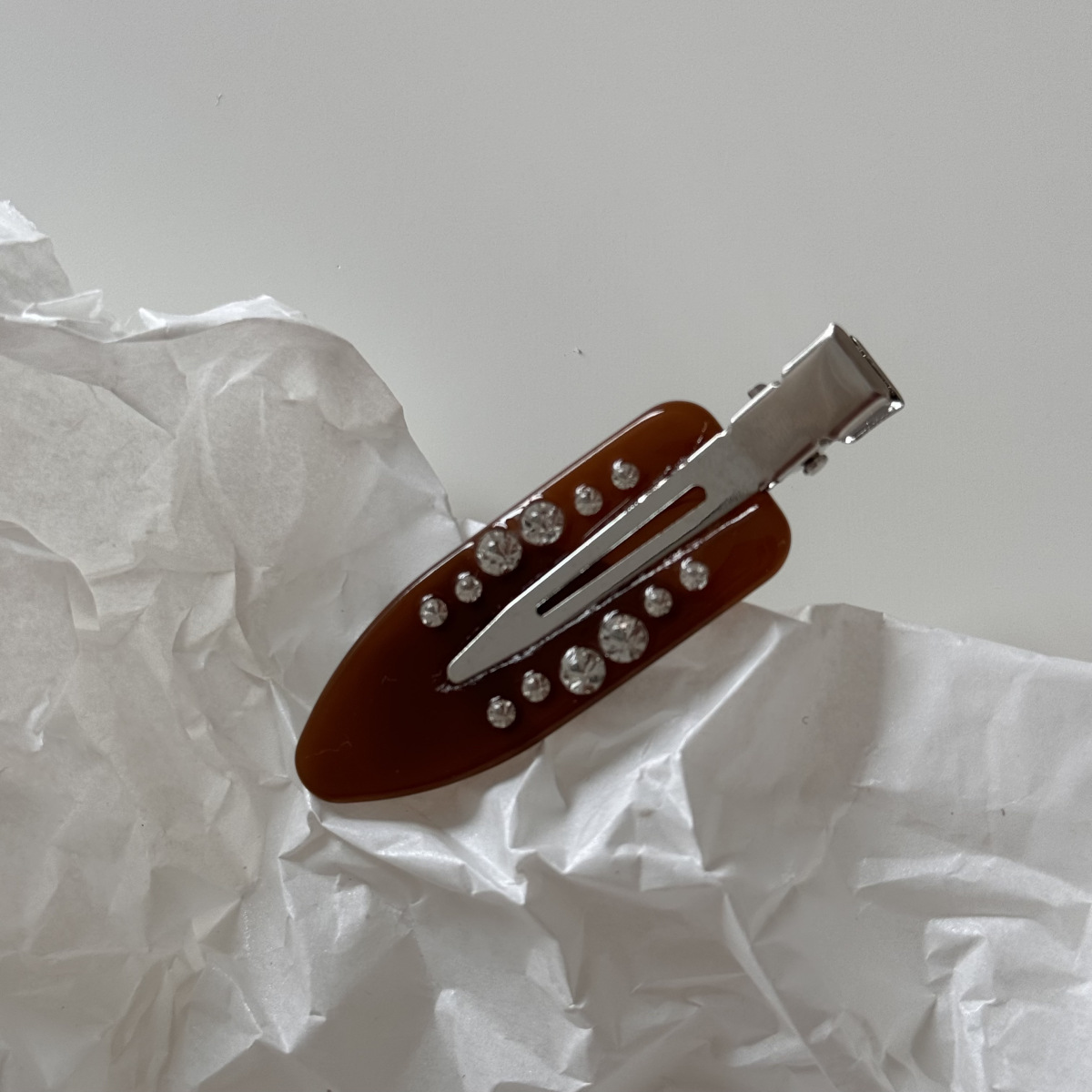 • 다이아몬드가 박힌 심리스 클립 - 살구 커피 다이아몬드