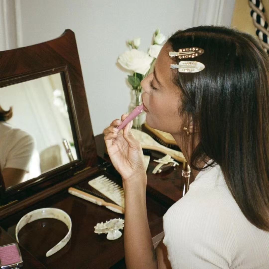 • 다이아몬드가 박힌 심리스 클립 - 밀크 살구 다이아몬드
