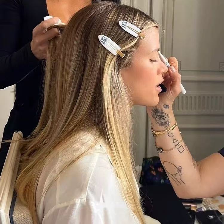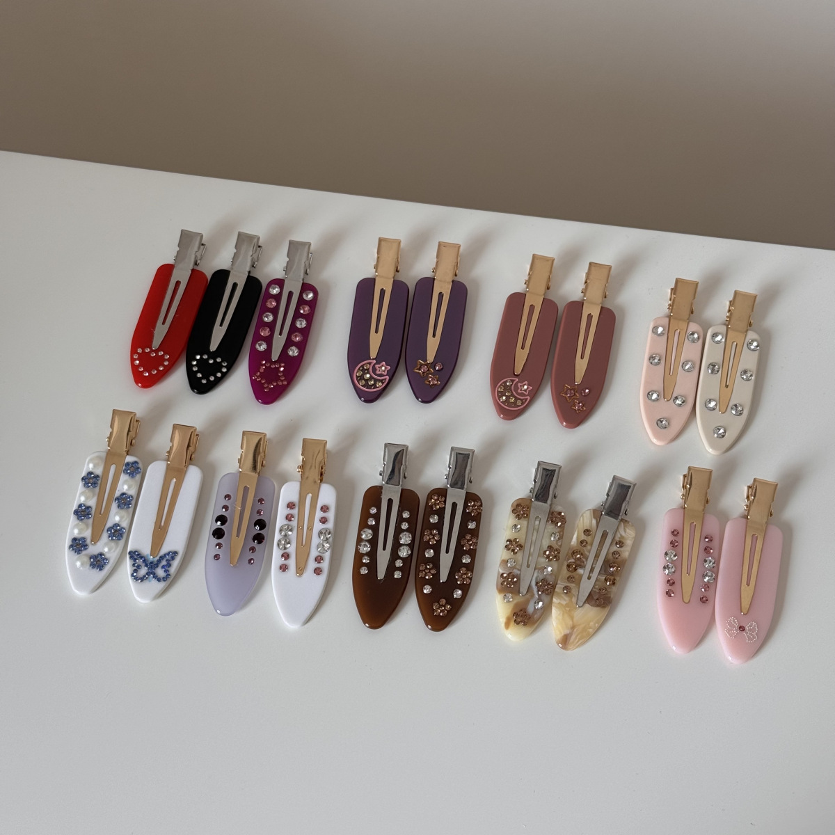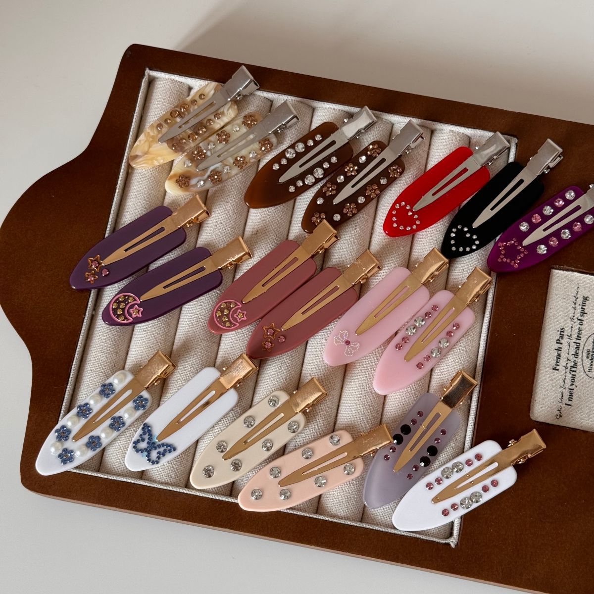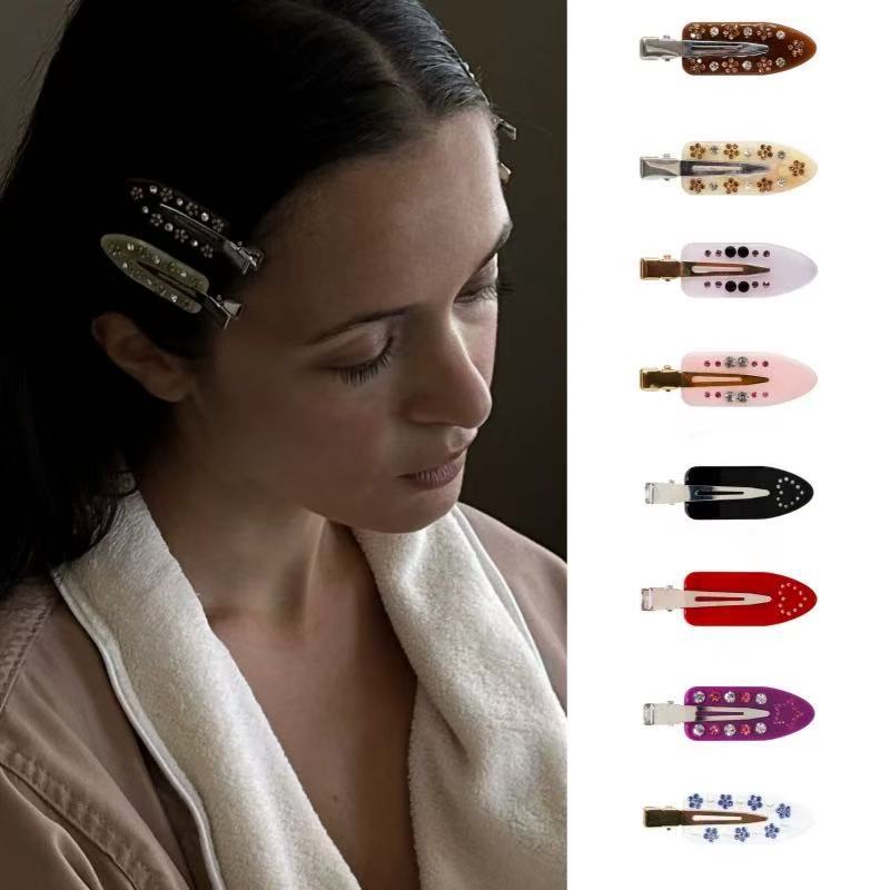 프렌치 다이아몬드가 박힌 사이드 헤어핀, 심리스 헤어핀, 대리석 패턴, 프렌치 아세테이트 덕빌 클립, 헤어핀, 새로운 스타일