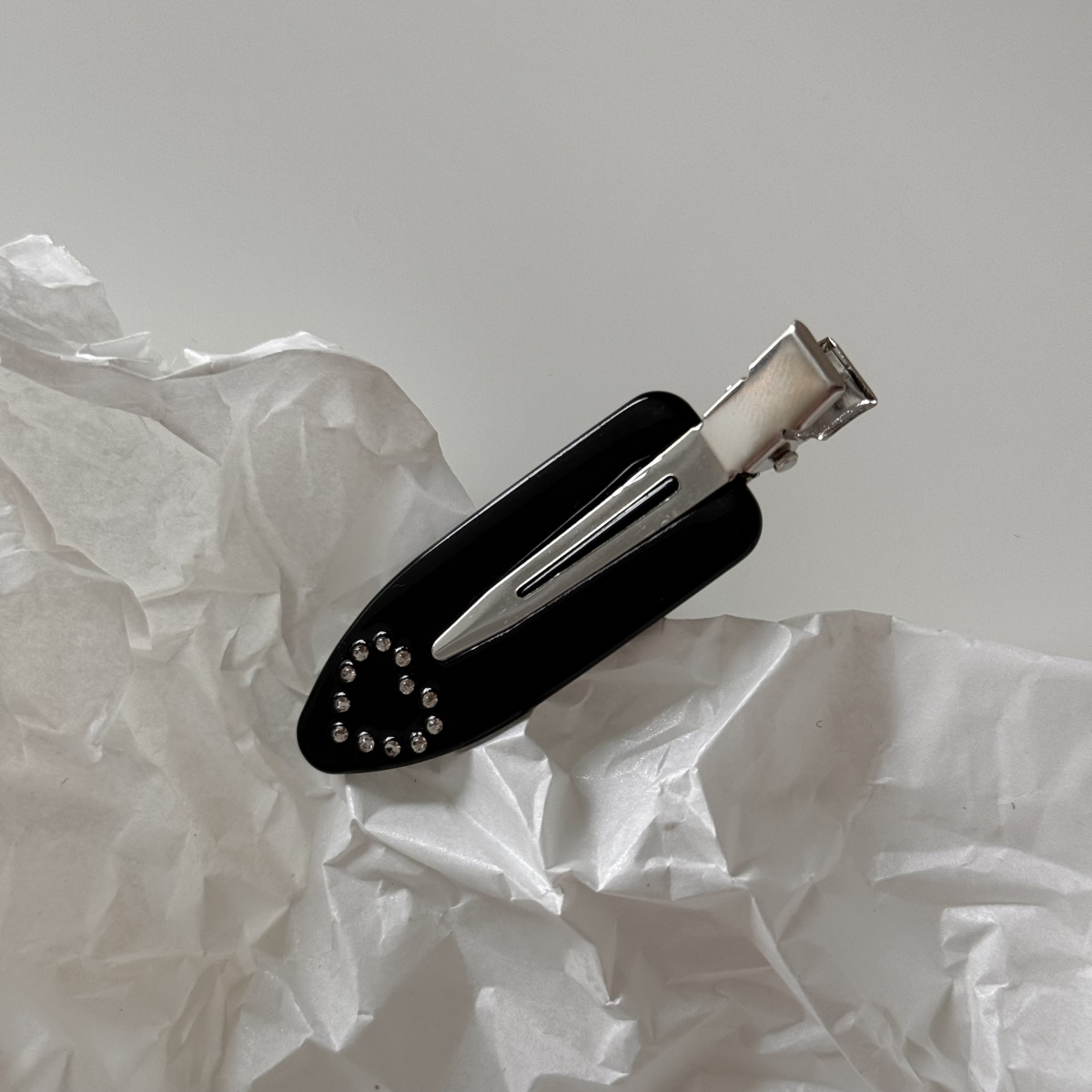 • 다이아몬드가 박힌 심리스 클립-블랙 러브 하트