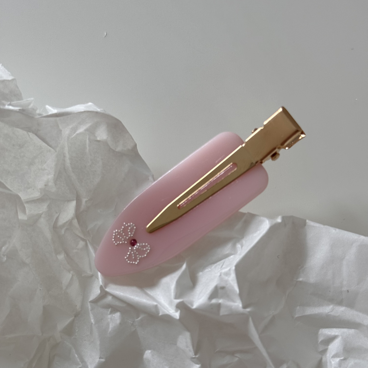 • 다이아몬드가 박힌 심리스 클립 핑크 리본