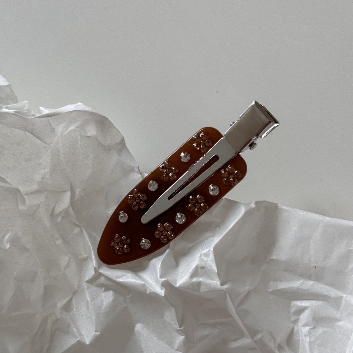 • 다이아몬드가 박힌 심리스 클립 브라운 플라워
