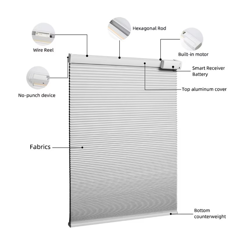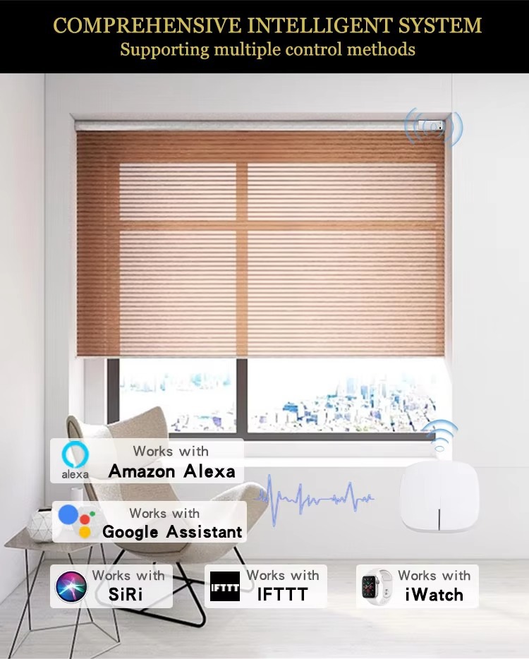 [스마트보이스 모델] 주야간 허니컴 커튼 - Alexa/Google을 지원하는 전동 방진 차양