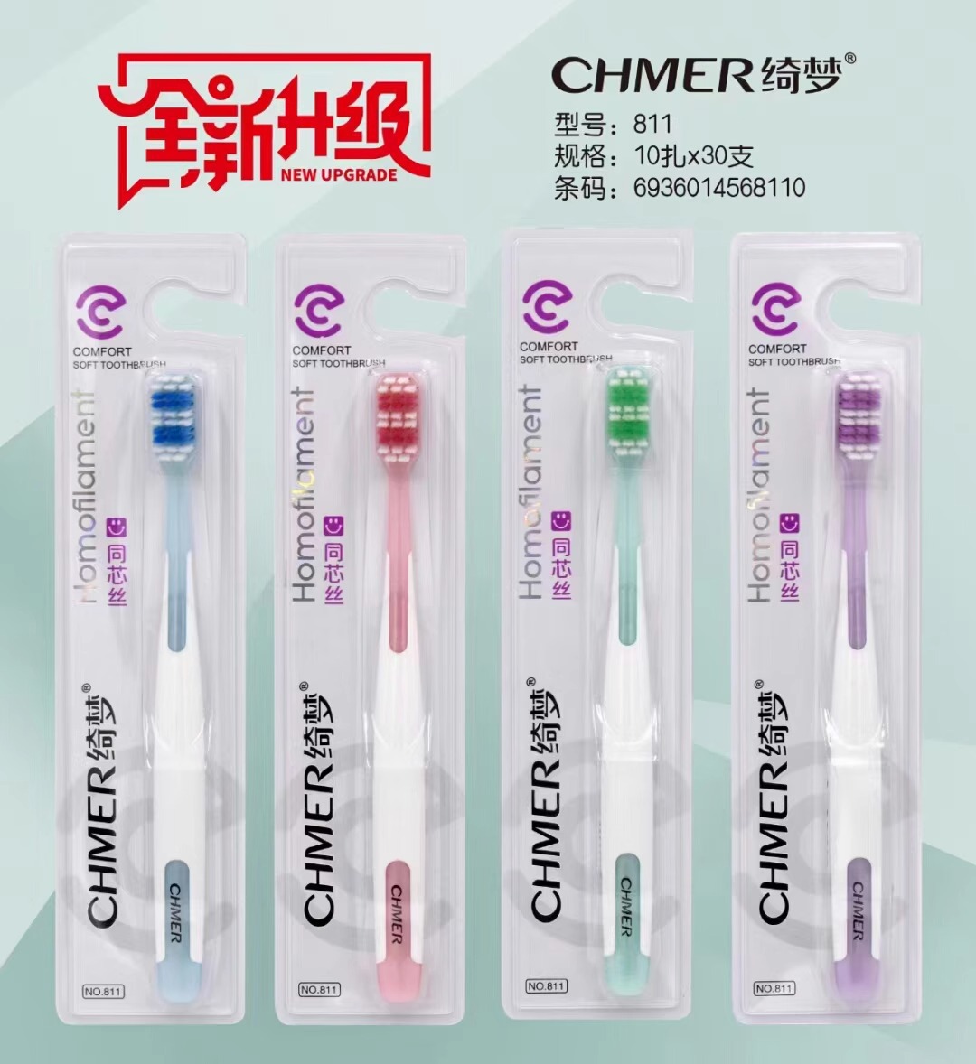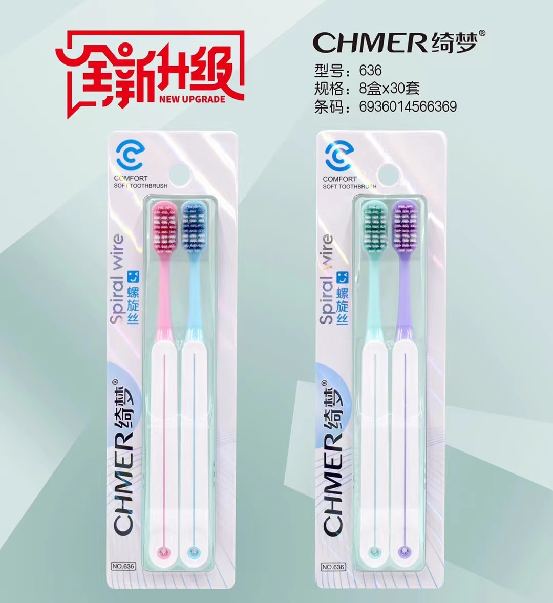 Qimeng 칫솔 부드러운 강모 더블 레이어 강모 부드러운 고무 미끄럼 방지 브러시 손잡이 단일 또는 이중 가족 팩 도매 색상 랜덤스토어 가기