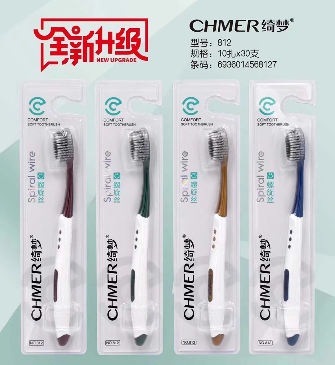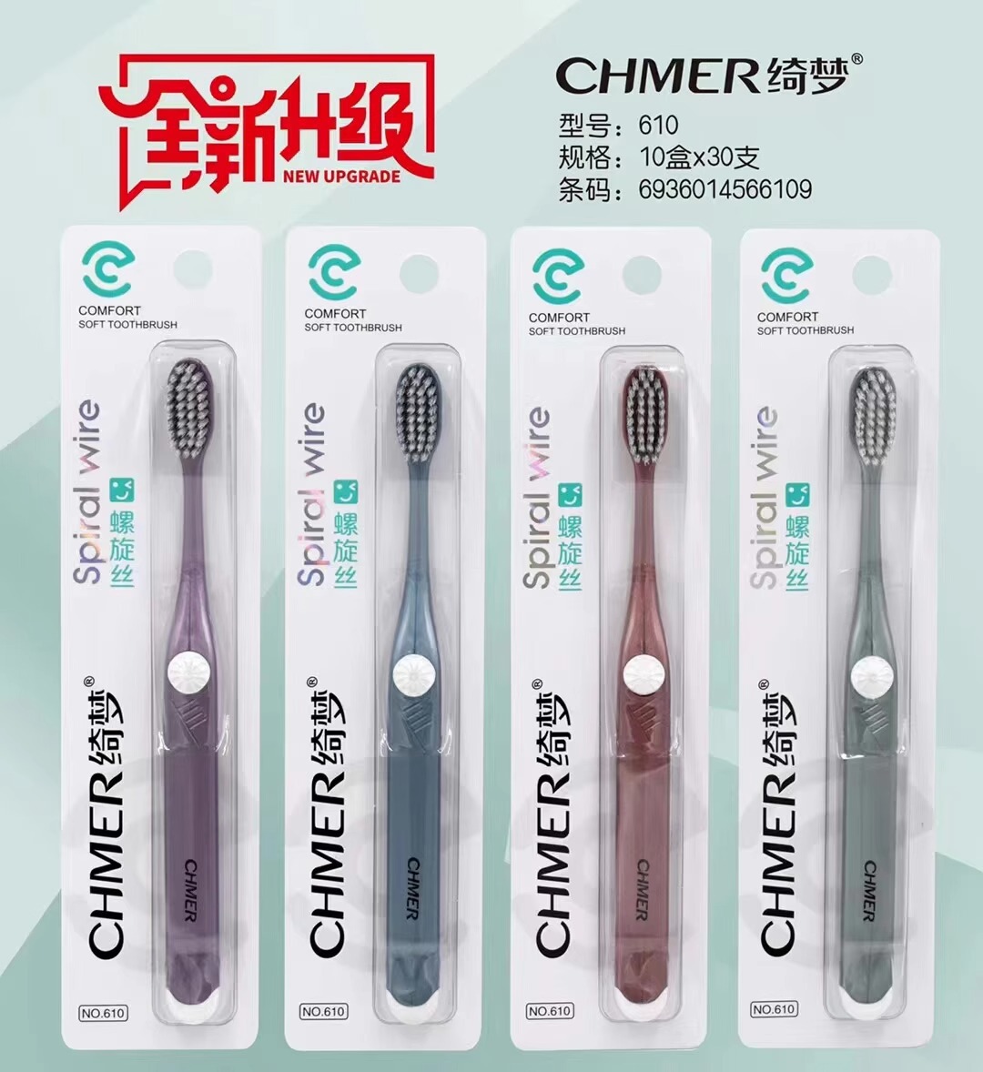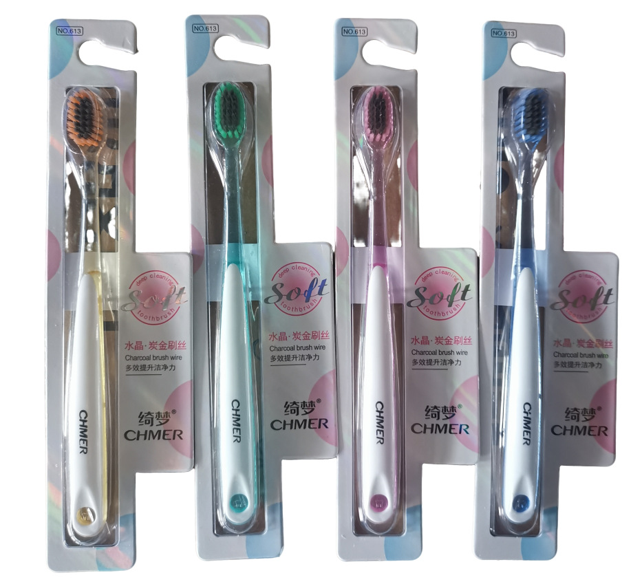 Qimeng 칫솔 부드러운 강모 더블 레이어 강모 부드러운 고무 미끄럼 방지 브러시 손잡이 단일 또는 이중 가족 팩 도매 색상 랜덤