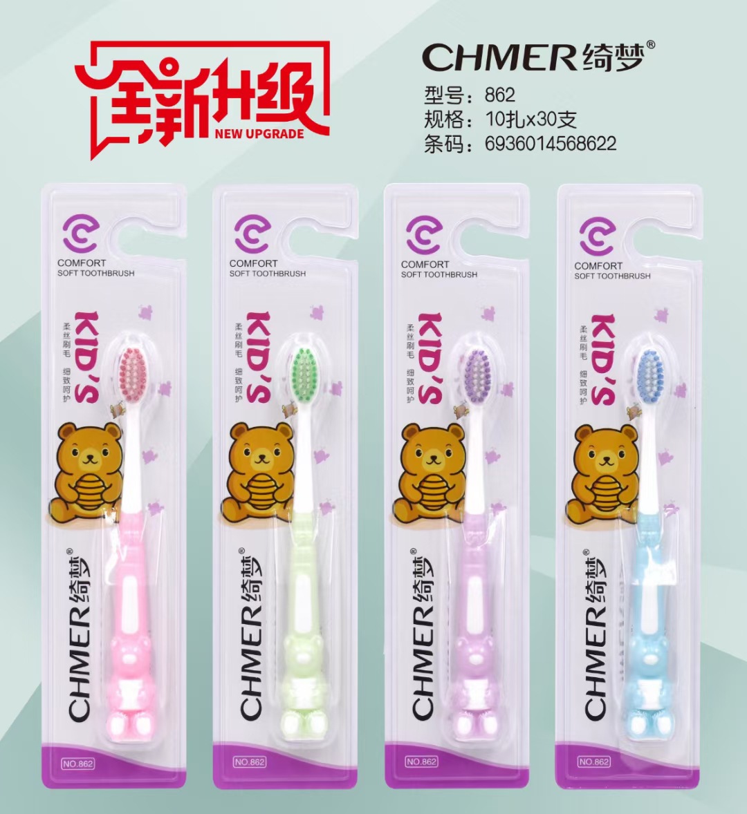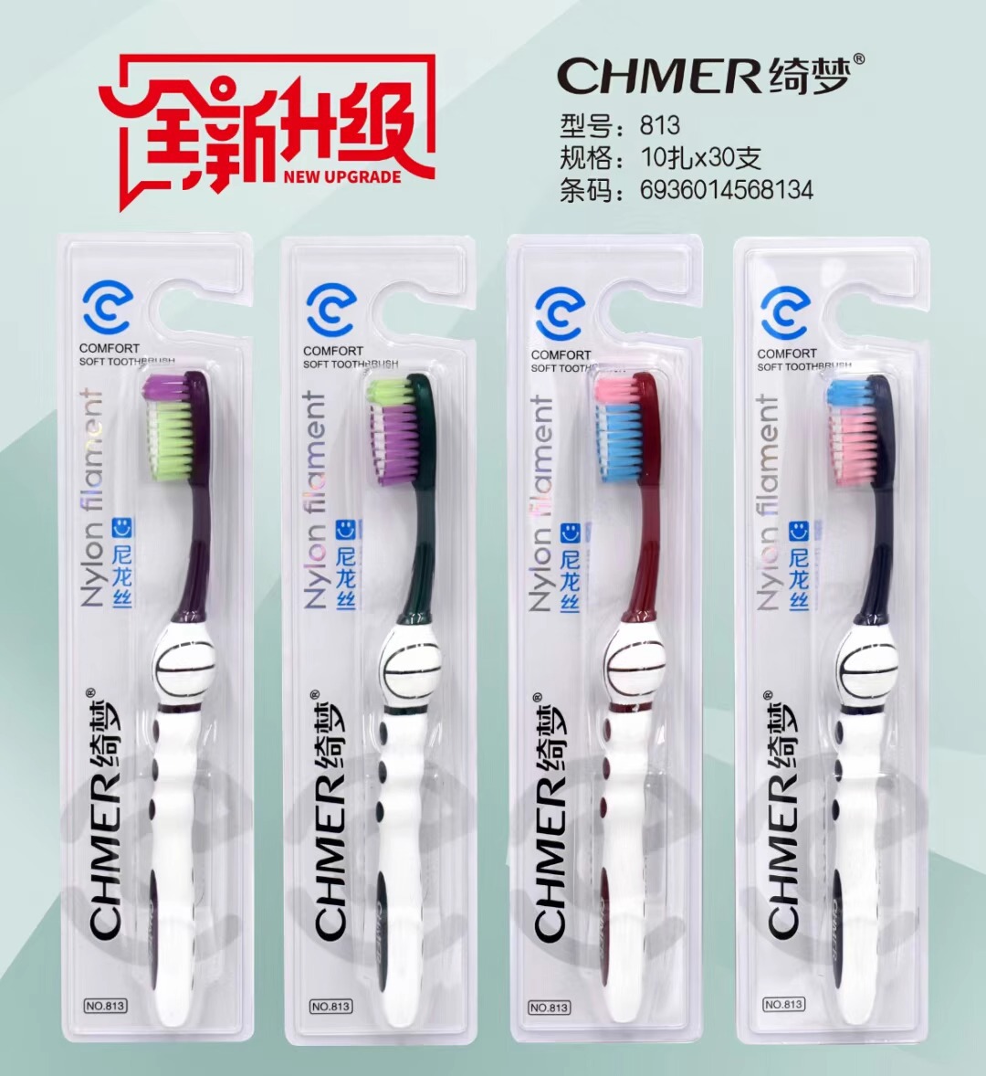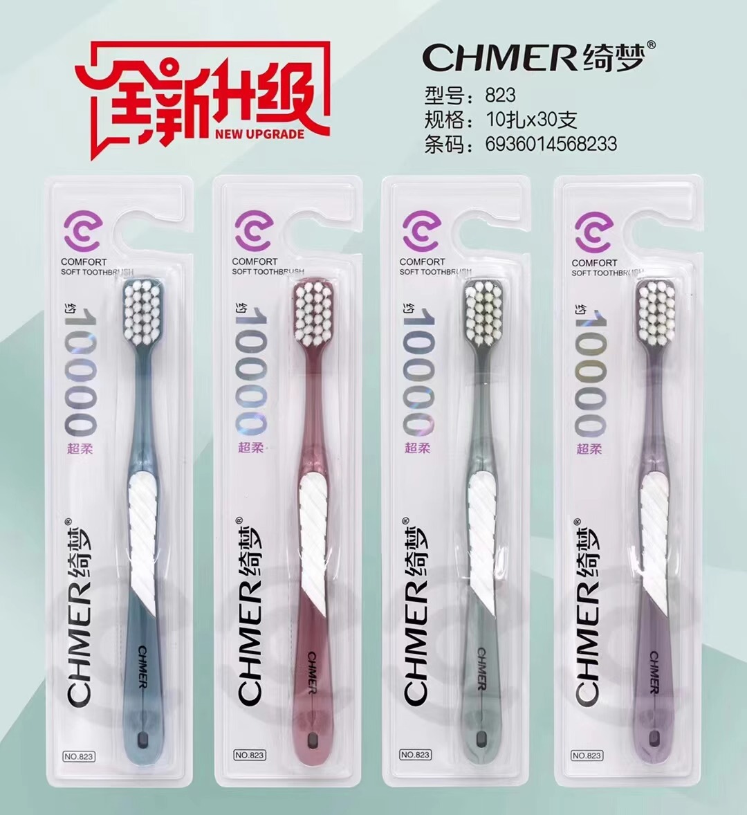 Qimeng 칫솔 부드러운 강모 더블 레이어 강모 부드러운 고무 미끄럼 방지 브러시 손잡이 단일 또는 이중 가족 팩 도매 색상 랜덤