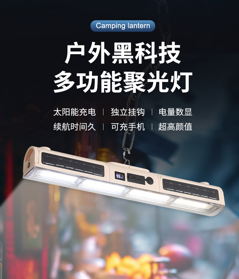 듀얼 태양광 캠핑 충전식 조명등, 야시장 조명, 야외 캠핑용, 긴 배터리 수명, 방수 텐트 비상등