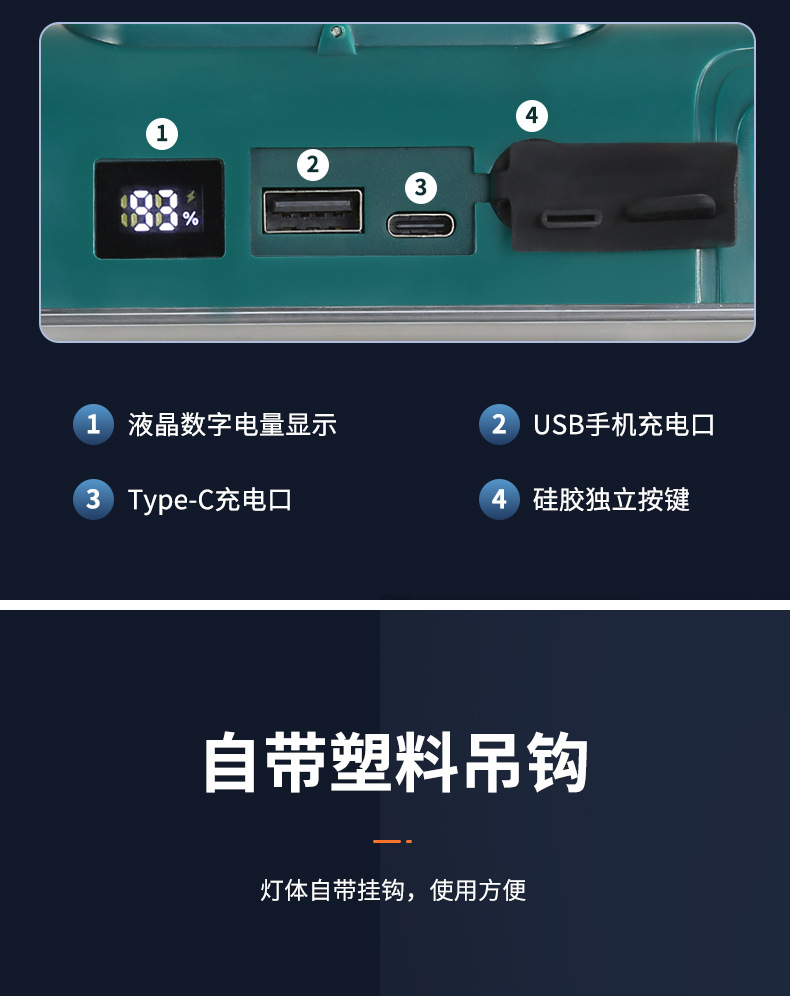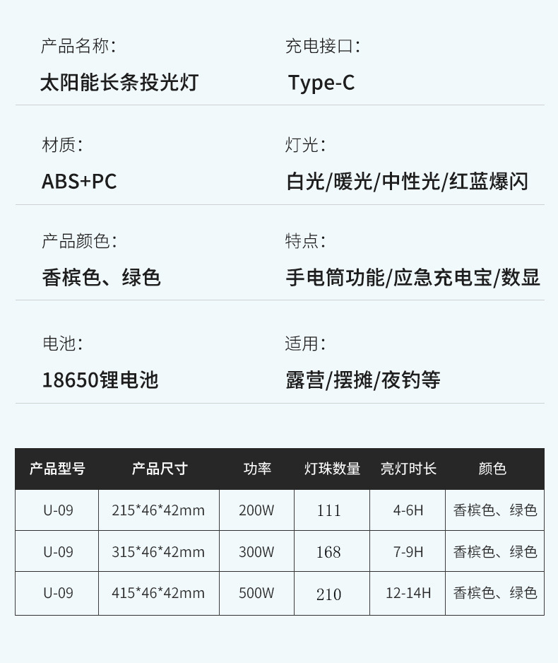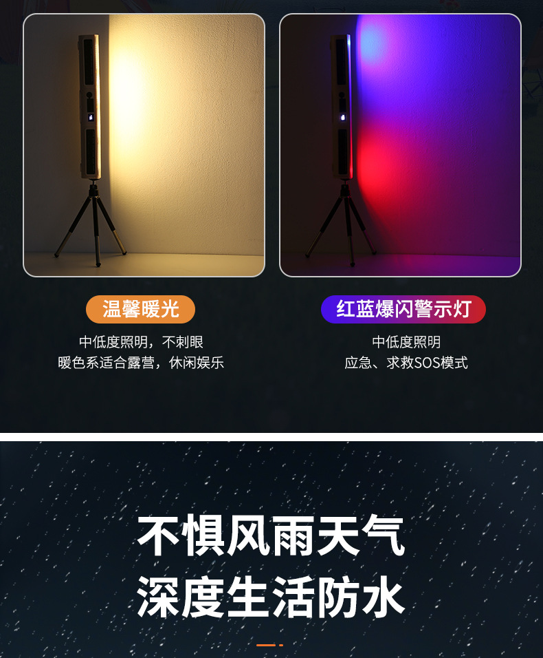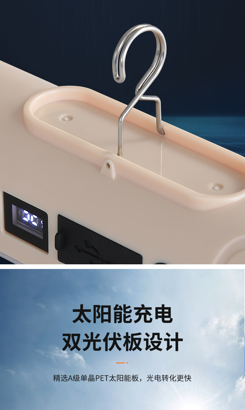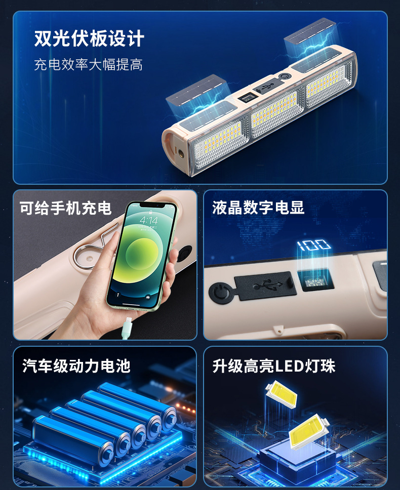 • 태양광 패널 415mm 삼색 조명 + 적색/청색 폭발 점멸 8000mAh