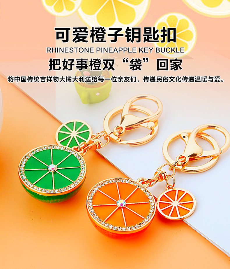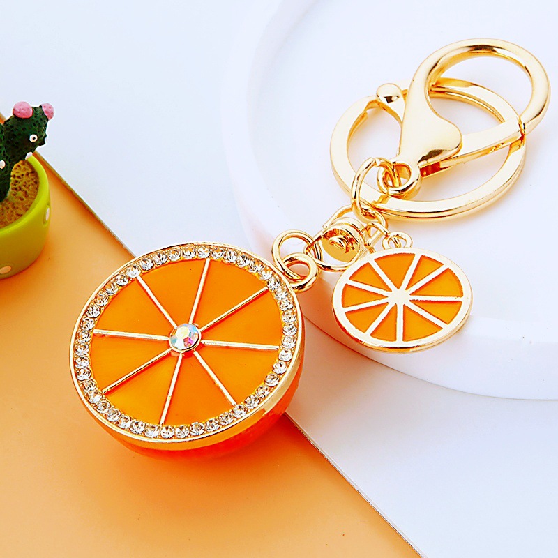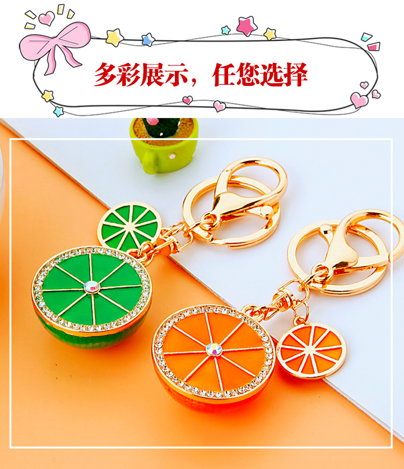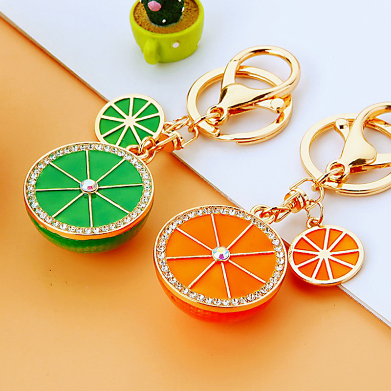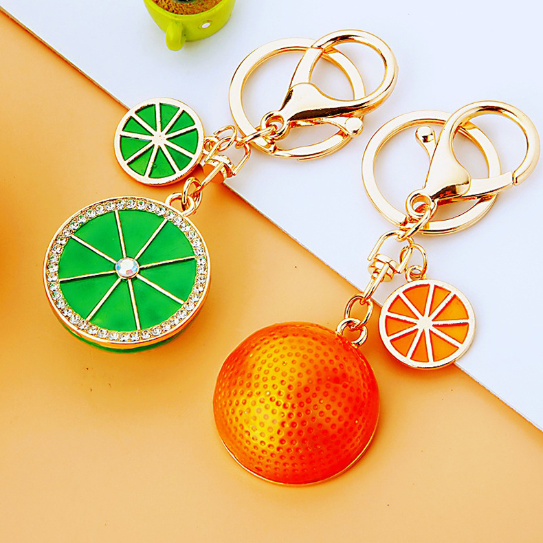 다이아몬드 과일 오렌지 레몬 자동차 키 체인 금속 남성과 여성 가방 펜던트 열쇠 고리 크로스 보더 펜던트 선물