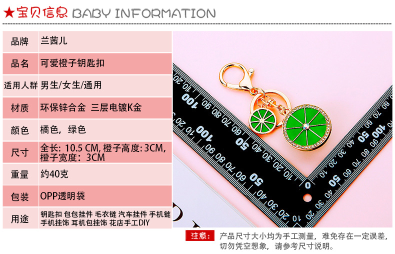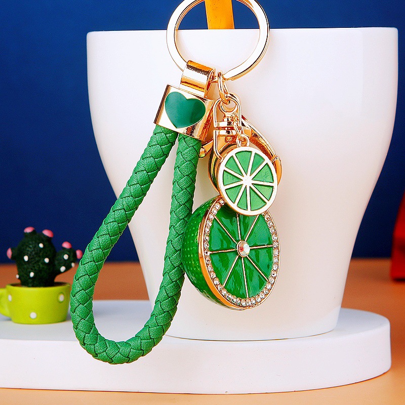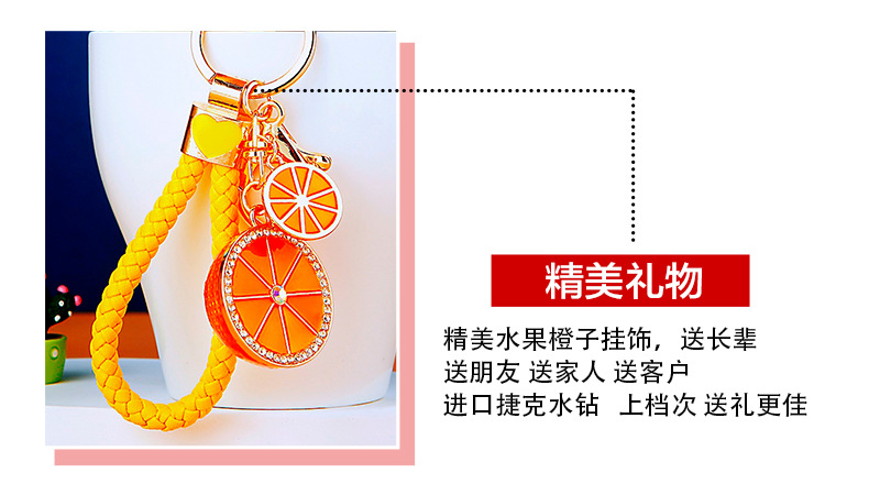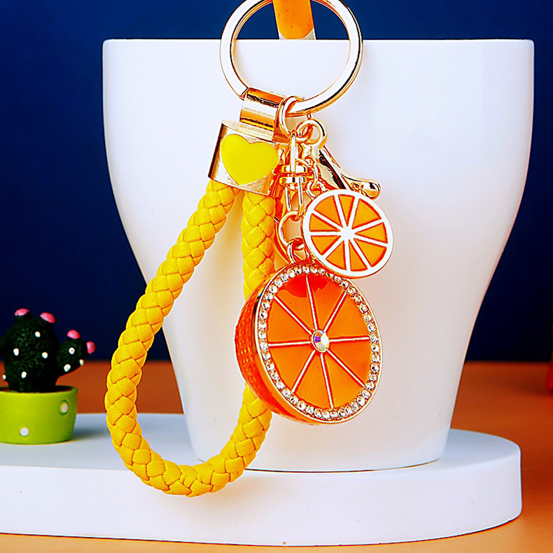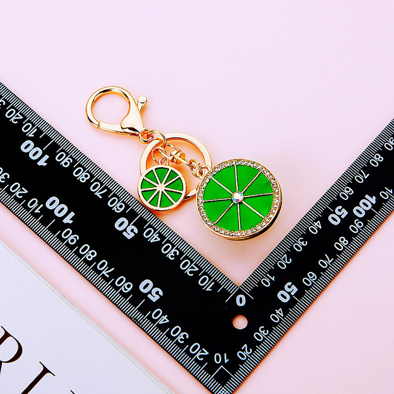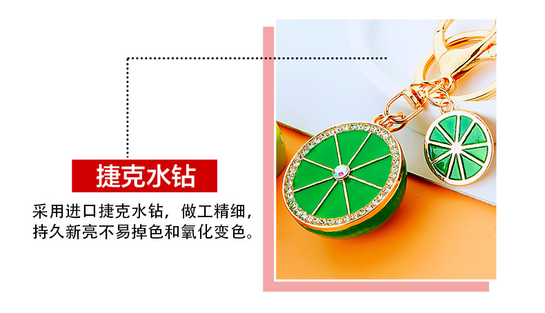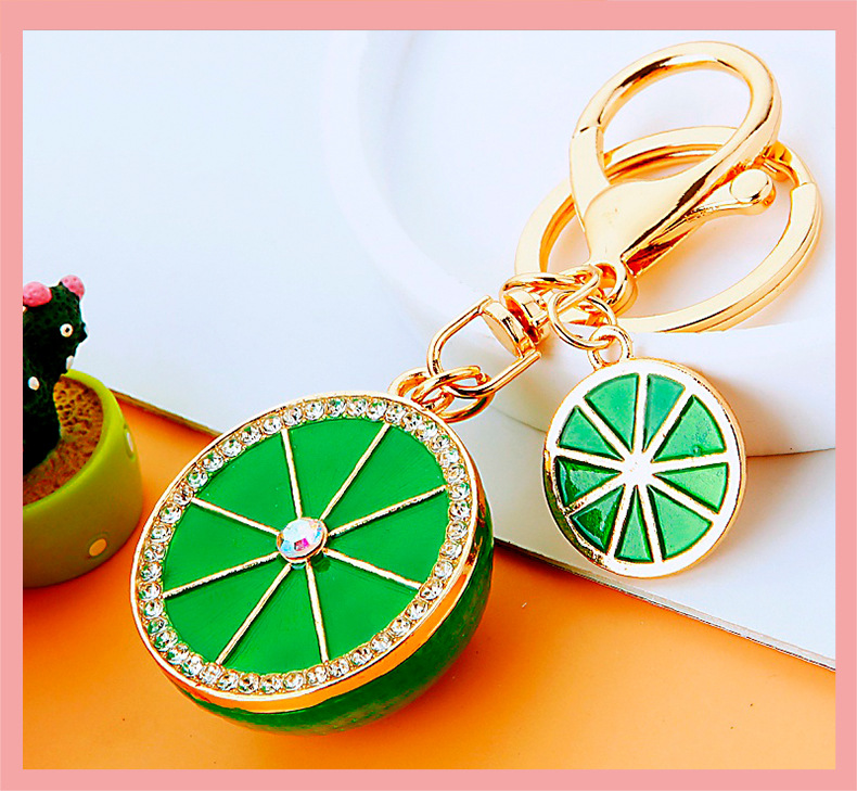 다이아몬드 과일 오렌지 레몬 자동차 키 체인 금속 남성과 여성 가방 펜던트 열쇠 고리 크로스 보더 펜던트 선물