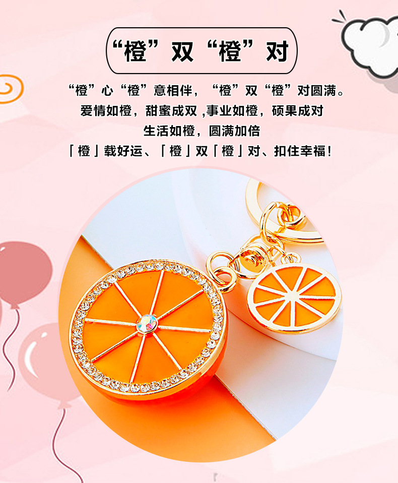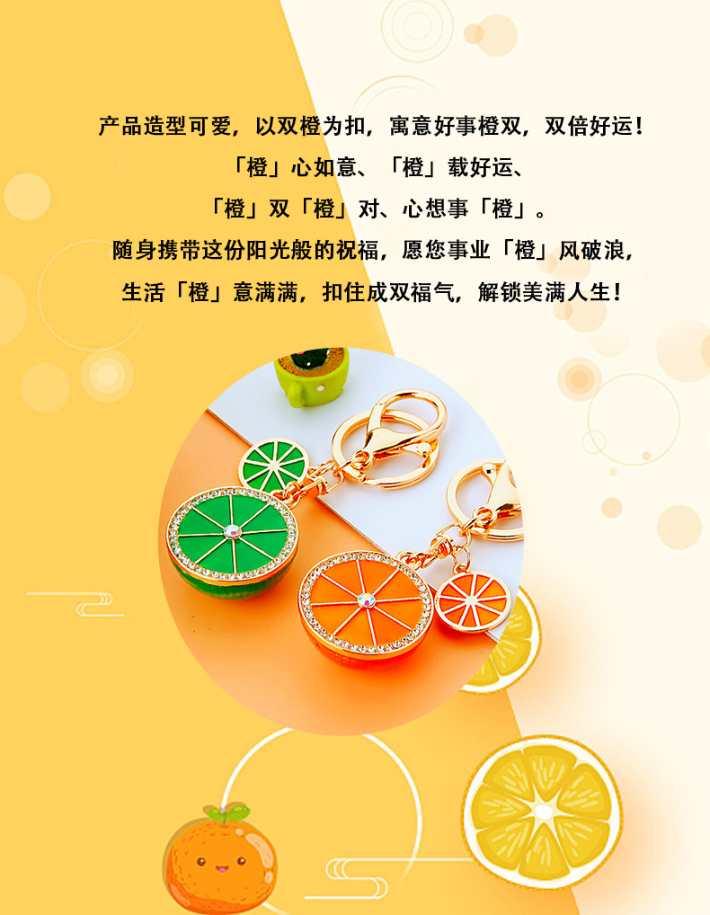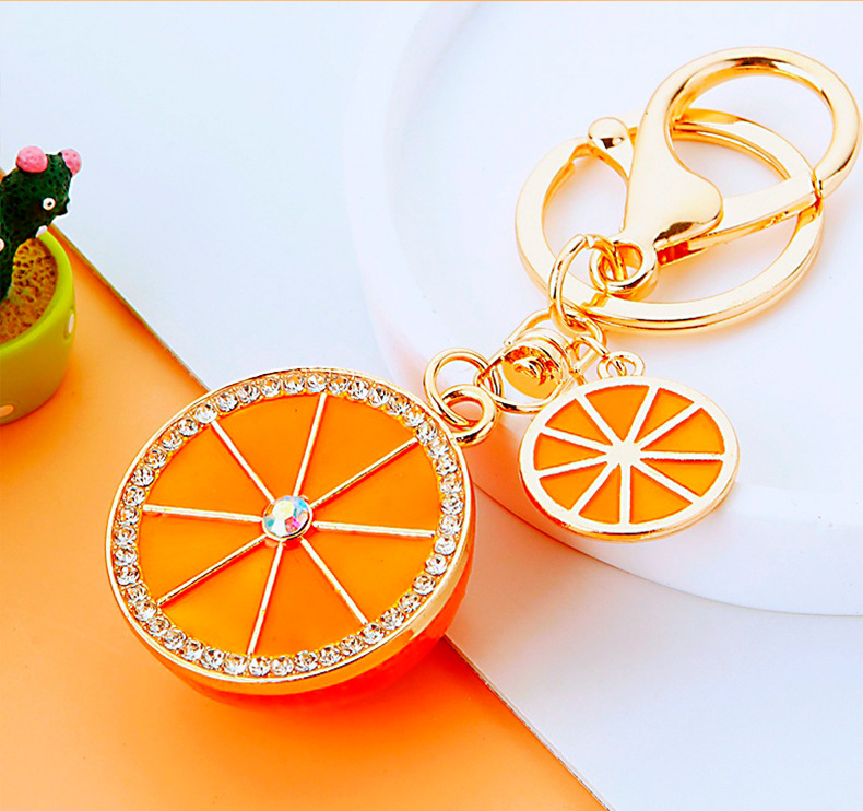 다이아몬드 과일 오렌지 레몬 자동차 키 체인 금속 남성과 여성 가방 펜던트 열쇠 고리 크로스 보더 펜던트 선물스토어 가기