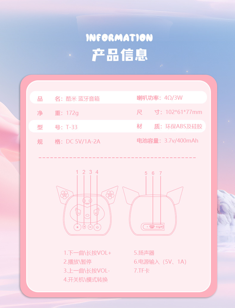 트렌디하고 창의적인 쿠로미 블루투스 스피커 미니 스피커 생일 선물 소녀 선물 장식품 휴대성스토어 가기