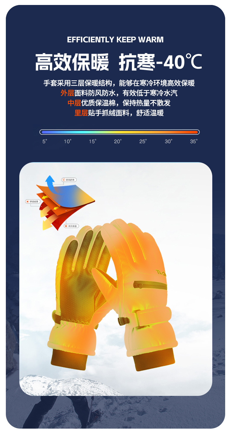 겨울용 제품 야외 사이클링 스포츠 겨울 보온 스키 장갑 남성용 사이클링 터치스크린 미끄럼 방지 방풍 방수