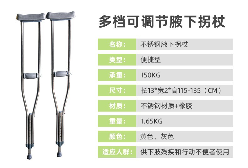 노인을 위한 도매 두꺼운 조절 가능한 의료용 지팡이, 환자를 위한 제조업체, 가정용 미끄럼 방지 이중 지팡이, 겨드랑이 지팡이, 보행 보조기스토어 가기