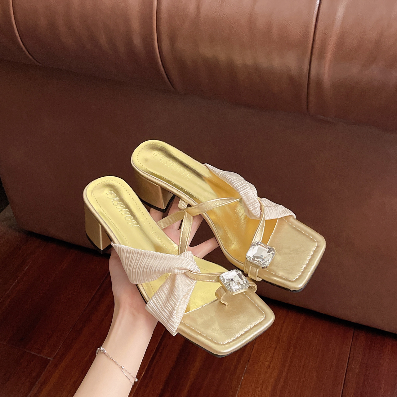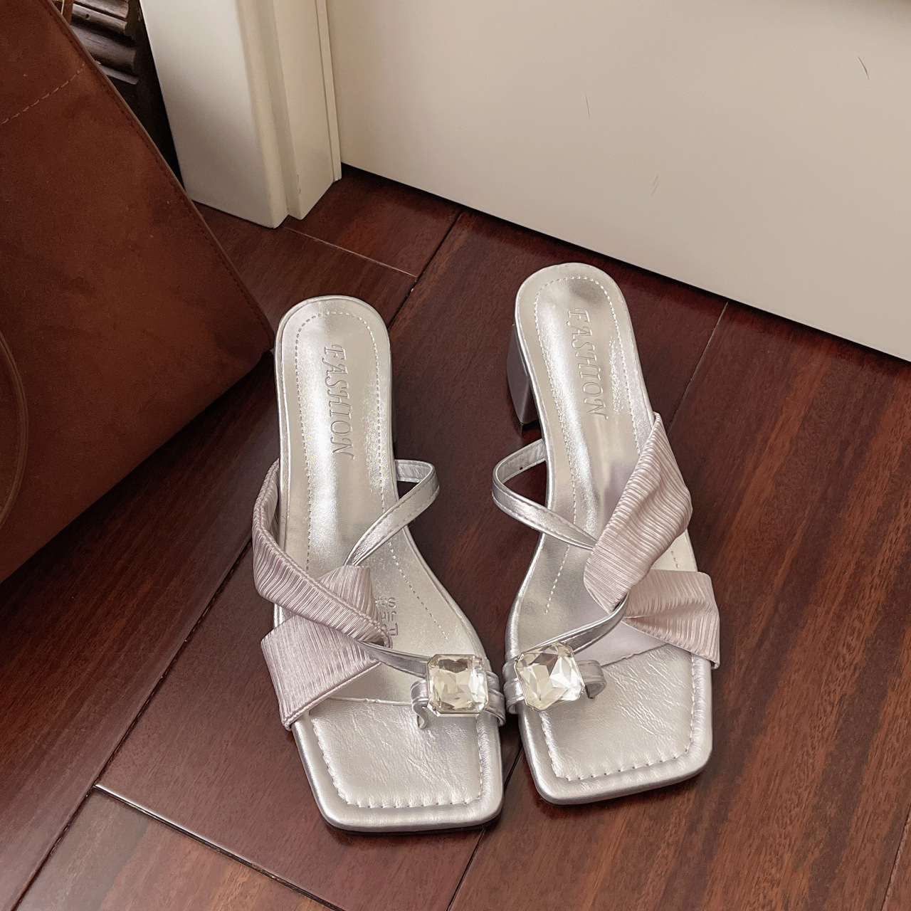 플립플롭 프렌치 스타일 2025 신상 여름 패션 아우터 두꺼운 굽 큰 라인스톤 틈새 다용도 기질 하이힐 샌들스토어 가기