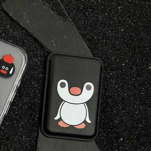 企鹅黑色适用iphone磁吸卡包简约magsafe卡包皮质小众6饭卡槽卡套