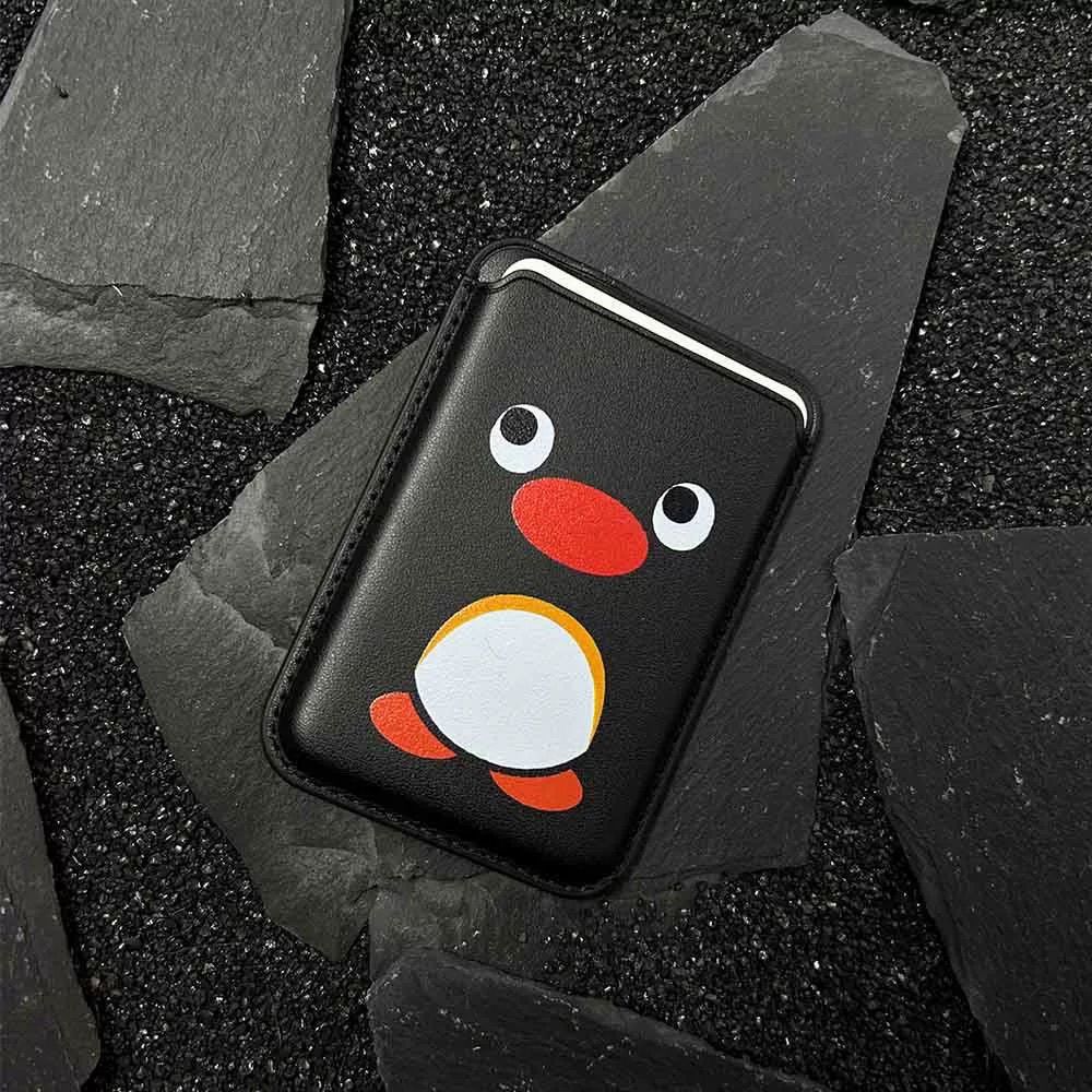 아이폰 마그네틱 카드 홀더에 적합한 펭귄 블랙 간단한 magsafe 카드 홀더 가죽 틈새 6 레스토랑 카드 슬롯 카드 홀더스토어 가기